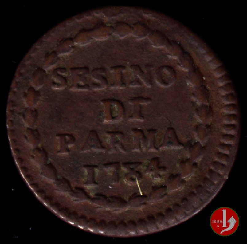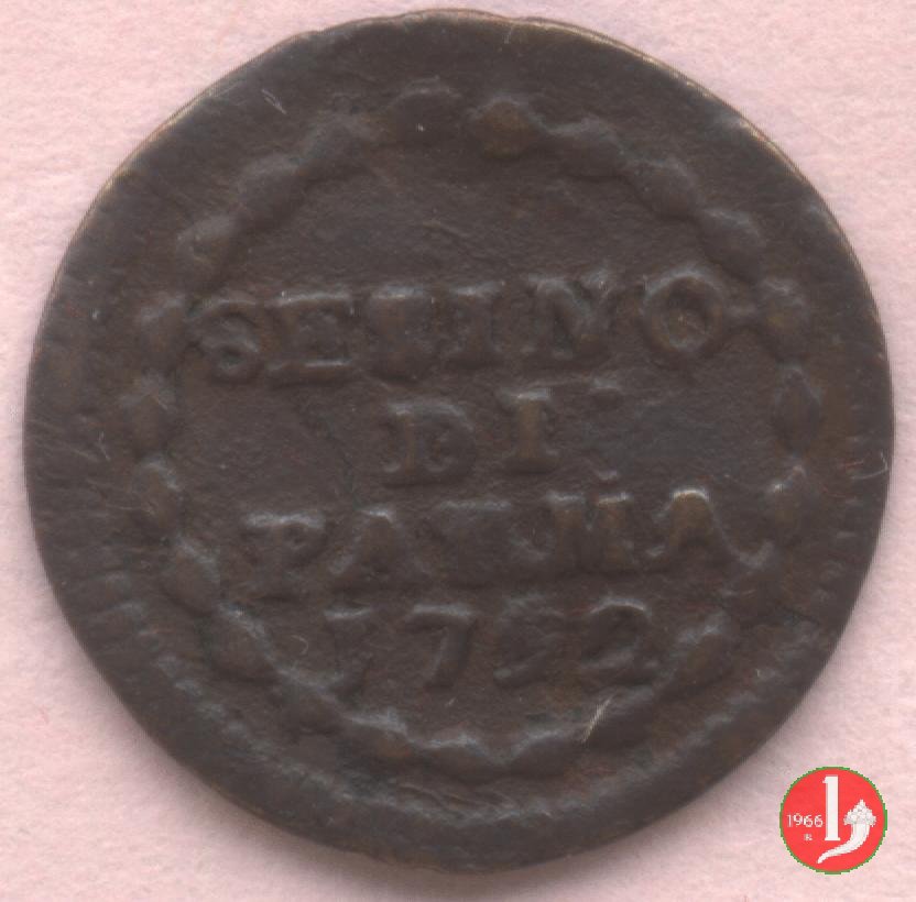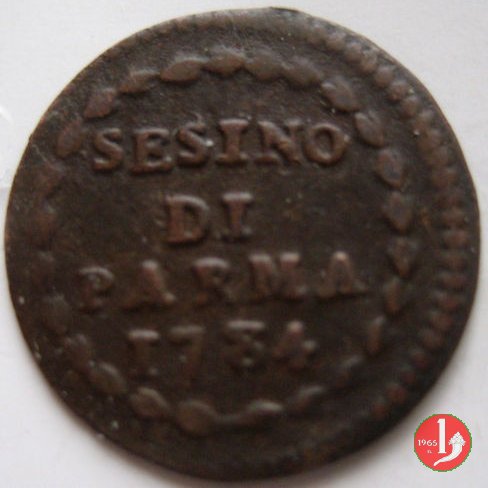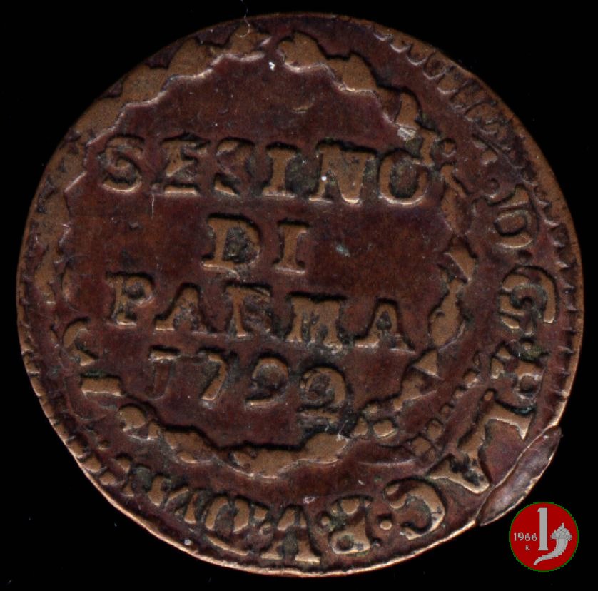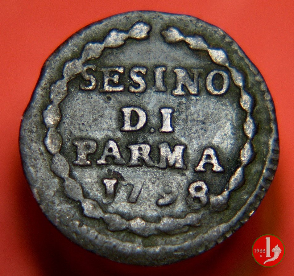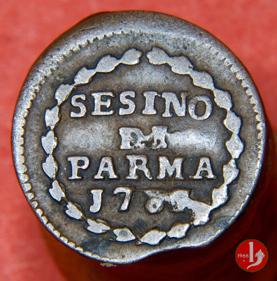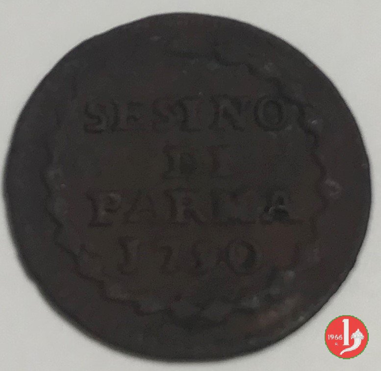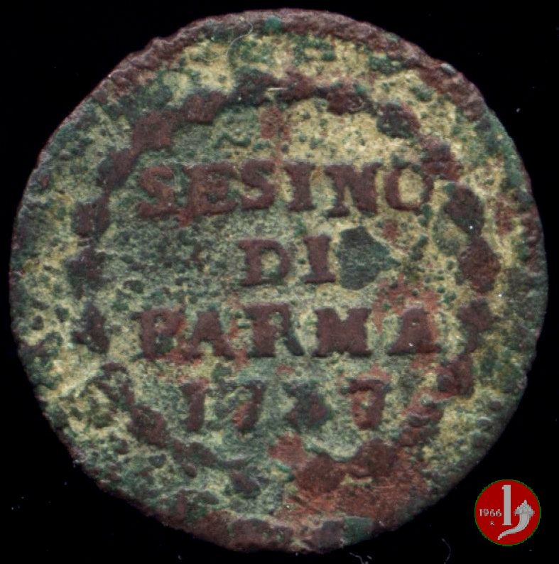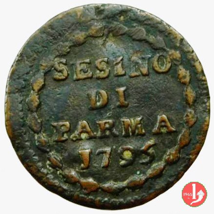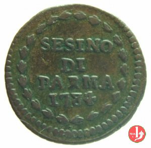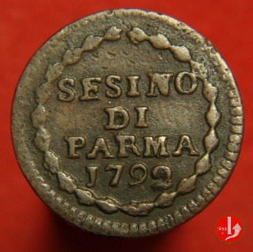 | Cod. W-FERD/0-10:9397 B. 1792, CNI 126: D\ FERD • I • H • I • D • G • PAR • P • V • DVX •, stemma coronato la cui corona interrompe la legenda entro cerchio di grani. R\ SESINO // DI // PARMA // J792 entro corona d'alloro in un cerchio di grani. | ||||||||||