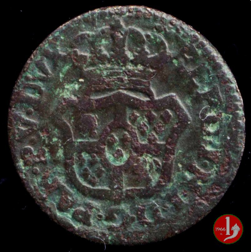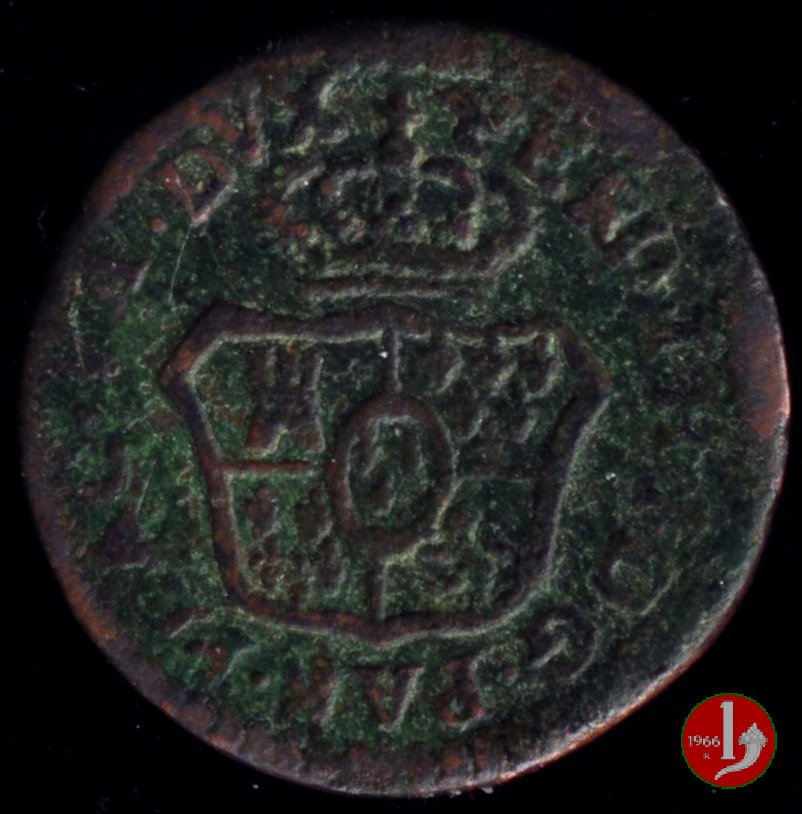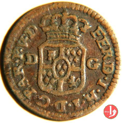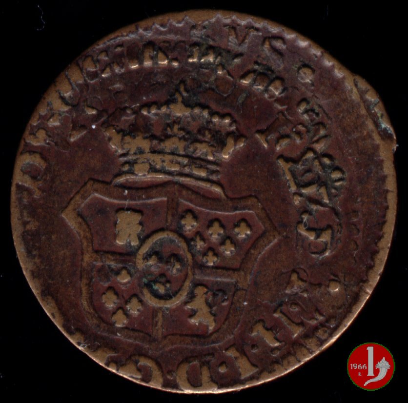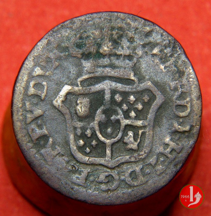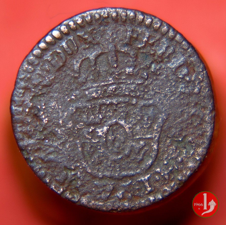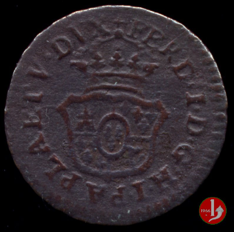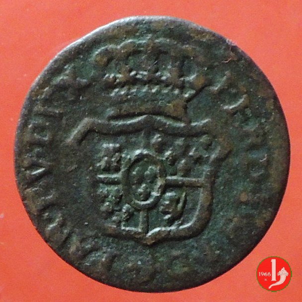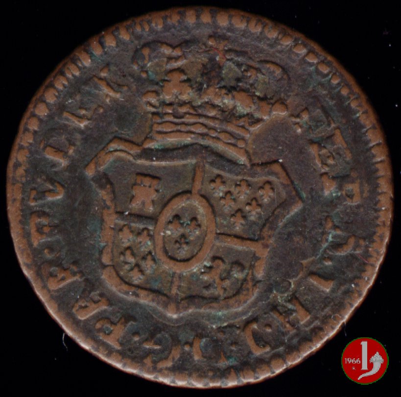 | Cod. W-FERD/0-3:11670 B. assente, CNI assente: D\ FERD • I • H • I • D • G • PAR • PLAC • VA • DVX •, stemma coronato simile a quello del CNI 80 ma che non interrompe la legenda entro cerchio di grani. R\ SESINO // DI // PARMA // 1786 entro corona d'alloro in un cerchio di grani. | ||||||||||