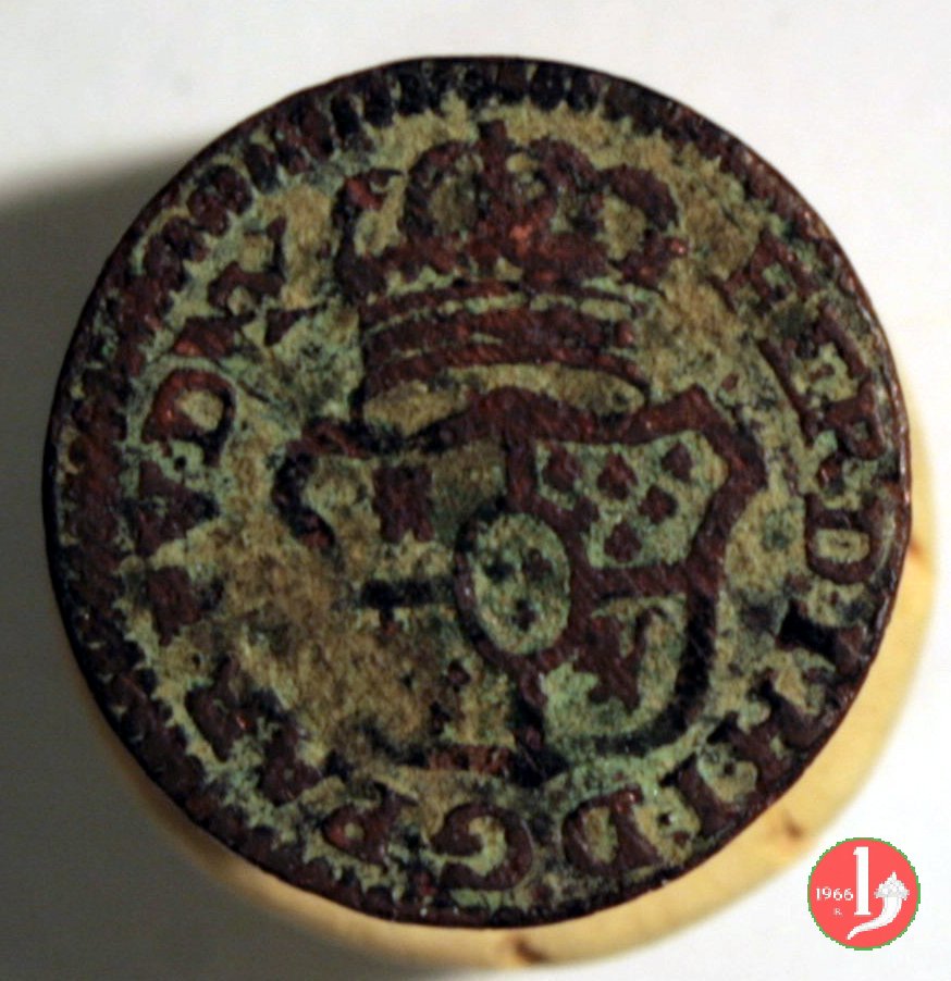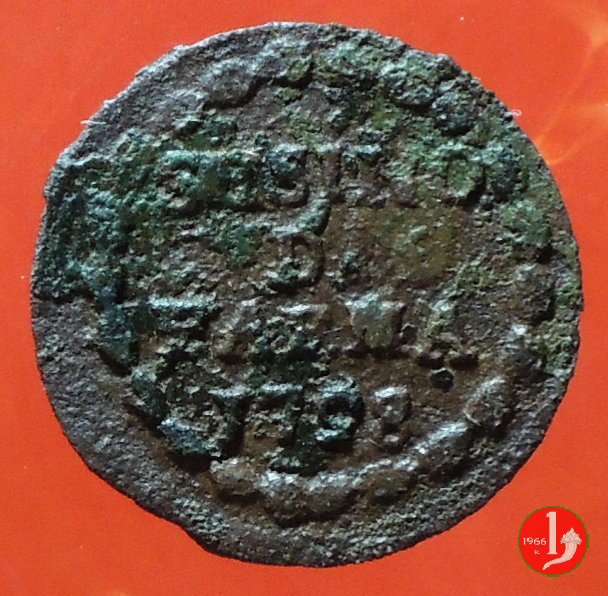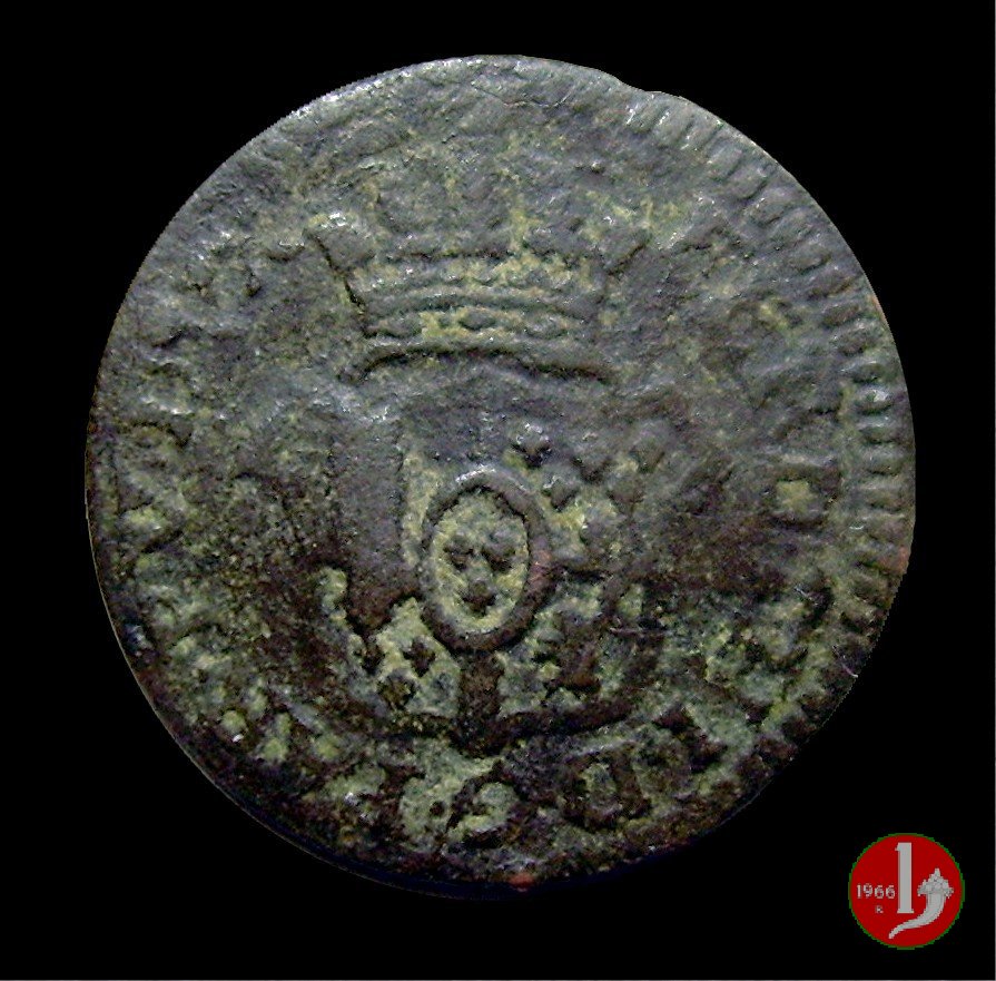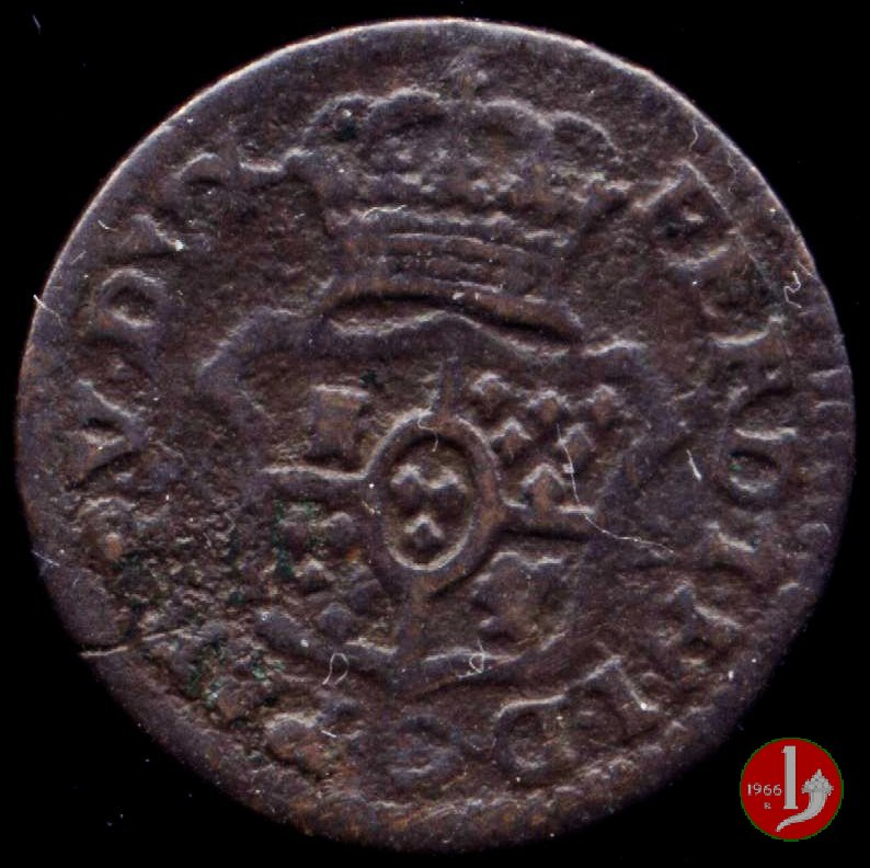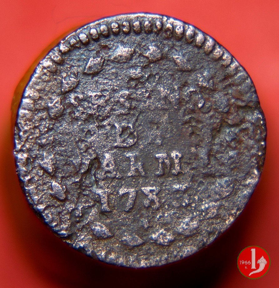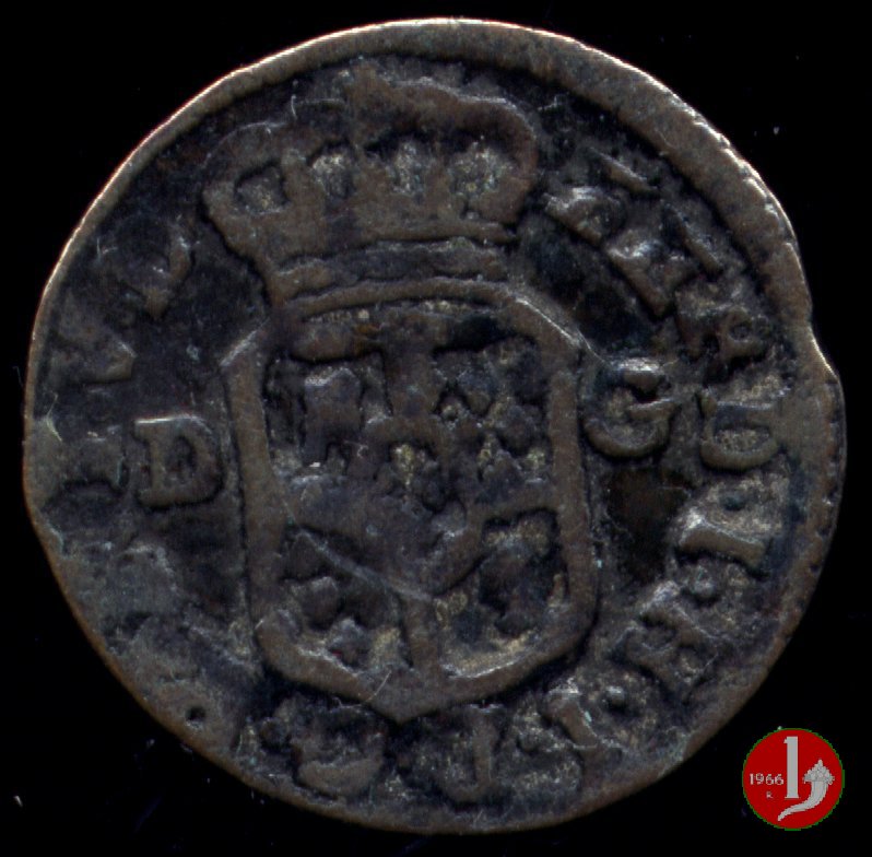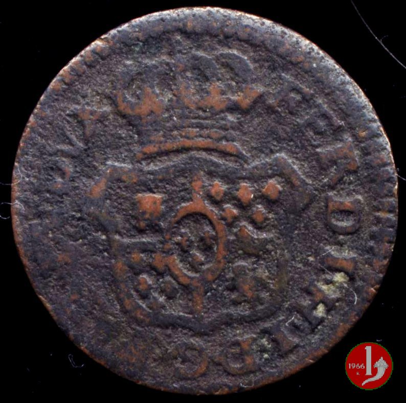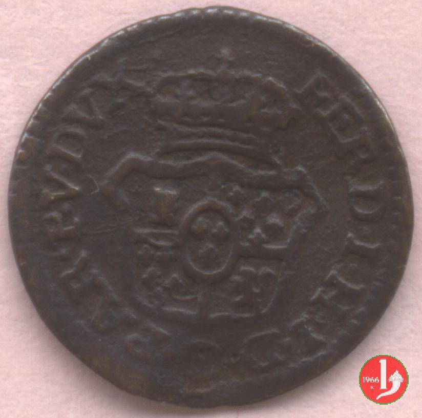 | Cod. W-FERD/0-3:11670 B. assente, CNI assente: D\ FERD • I • H • I • D • G • PAR • PLAC • VA • DVX •, stemma coronato simile a quello del CNI 80 ma che non interrompe la legenda entro cerchio di grani. R\ SESINO // DI // PARMA // 1786 entro corona d'alloro in un cerchio di grani. | ||||||||||