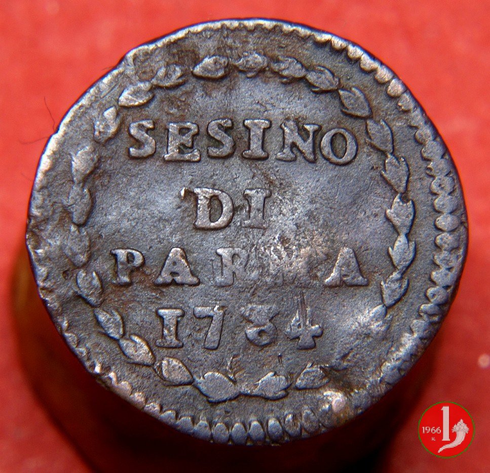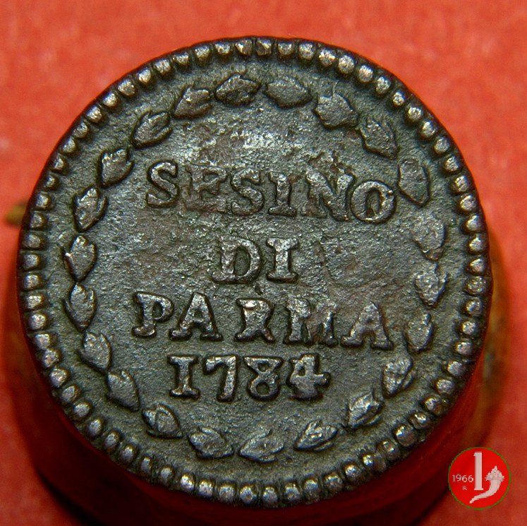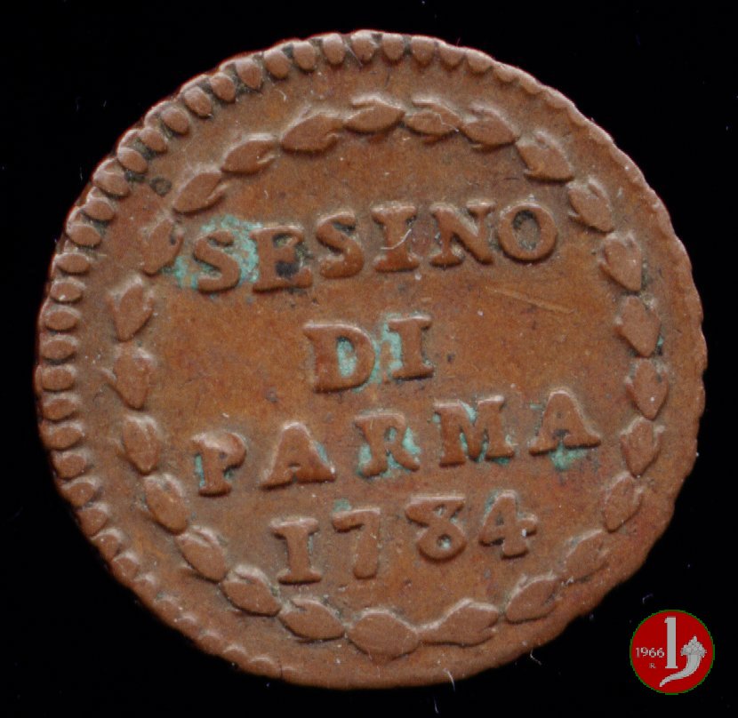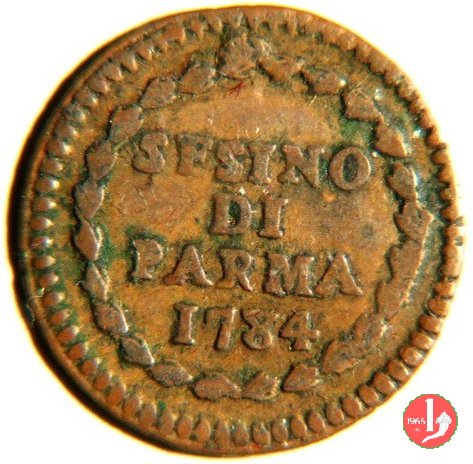 | Cod. W-FERD/0-1:9390 B. assente, CNI assente: D\ FERD • I • H • I • D • G • PAR • P • V • DVX •, stemma coronato simile al precedente ma piú alto con corona che interrompe competamente la legenda entro cerchio di grani. R\ SESINO // DI // PARMA // 1784 entro corona d'alloro in un cerchio di grani. | ||||||||||