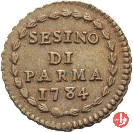 | Cod. W-FERD/0-1:9383 B. 1784A, CNI 45: D\ FERD • I • D • G • H • I • PA • PLA • ET V • DVX •, stemma coronato entro cerchio di grani. R\ SESINO // DI // PARMA // 1784 entro corona d'alloro in un cerchio di grani. | ||||||||||