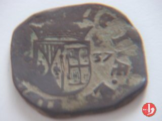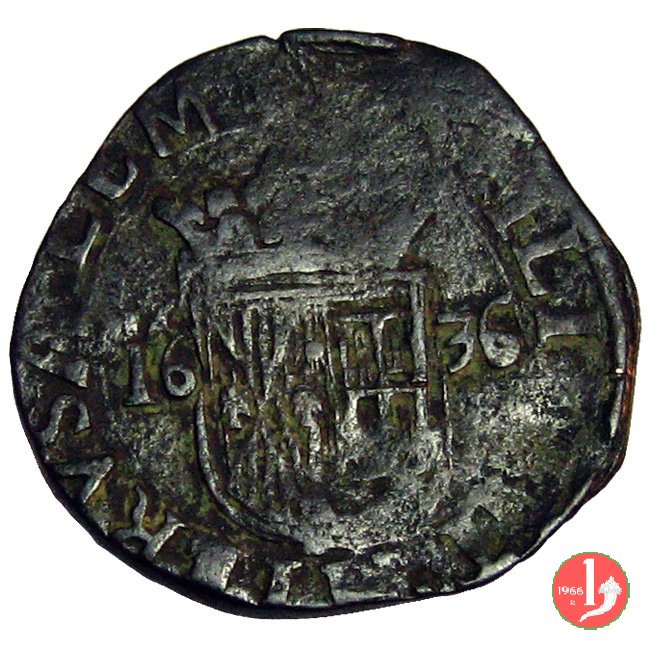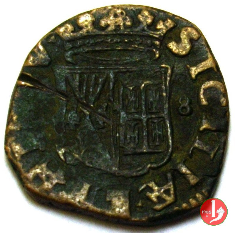 .PHILIPPVS. IIII • D • G, Busto radiato del re volto a sx, dietro sigla, sotto il busto la data. +SICILIAE ET HIERVSALEM, Scudo partito coronato, ai lati la data divisa in due parti.