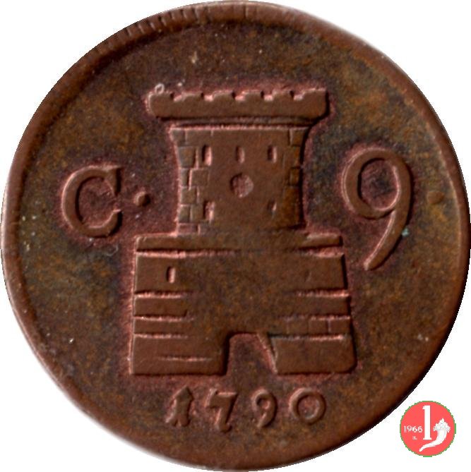 FERDINAN IV SICIL REX, Busto del re a dx, sotto sigla P. Torre con ai lati l'indicazione del valore C • 9 •, sotto la data.