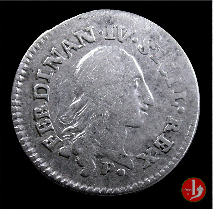 FERDINAN • IV • SICIL • REX, testa del re volta a dx, sotto la sigla P. IN HOC SIGNO VINCES, Croce gigliata con raggi nei quarti, nel 1°, 3° e 4° quarto della croce sigle dell'ufficiale di zecca, in basso la data.