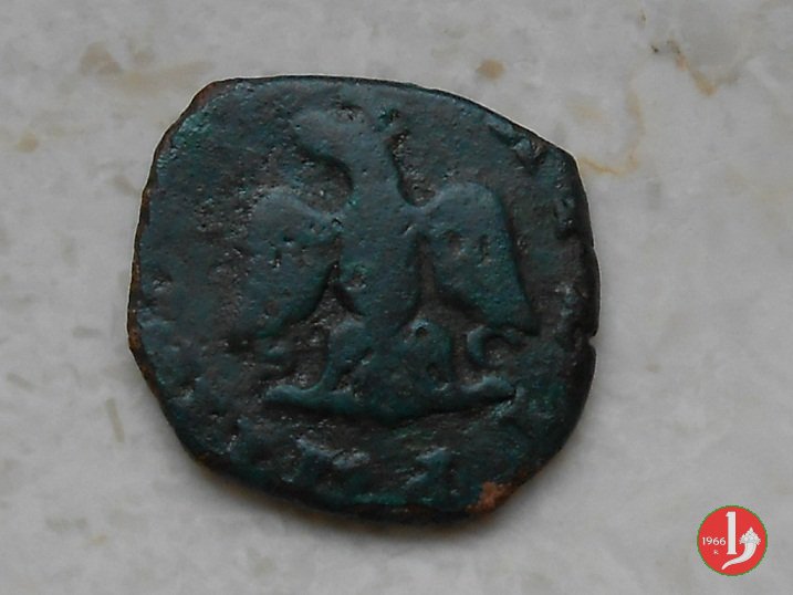Aquila coronata ad ali aperte volta a sinistra, sotto le ali D C