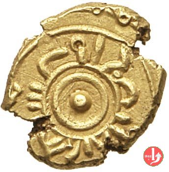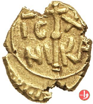 In centro globetto entro cerchio lineare, intorno in cufico Federico Re di Sicilia; nel giro legenda pseudo cufica Croce latina accostata dalle lettere ICXC  e NI KA, intorno legenda cufica