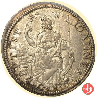 2 D/ FRAN •MED •MAGN •DVX •ETRVRIÆ •II • sotto stella a 6 punte R/  •S •   IOANNE   S    •BAPTISTA stella a 6 punte   giglio Esergo 1583 • (CNI XII n.81)