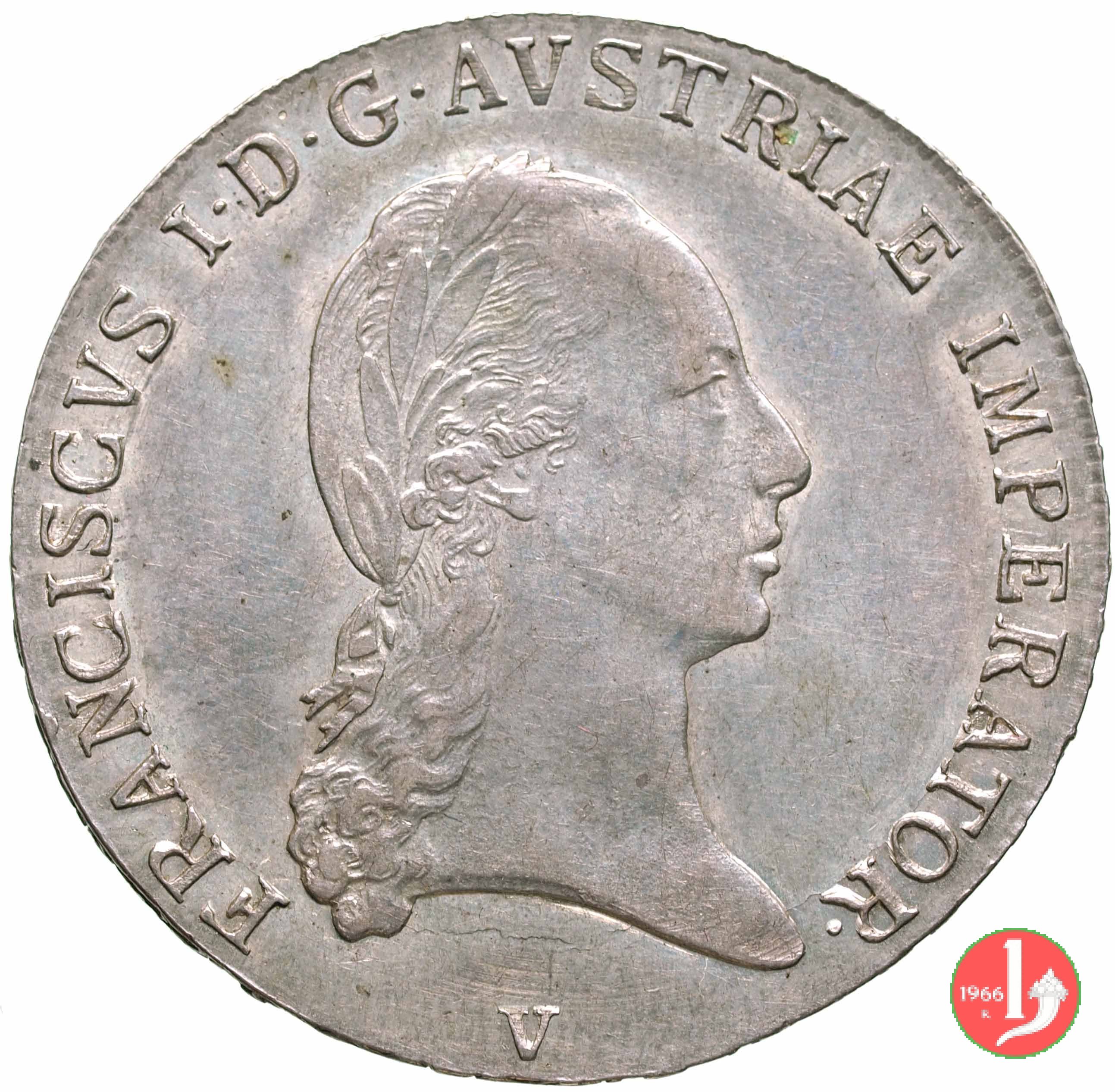 FRANCISCVS I D G AVSTRIAE IMPERATOR testa laureata a destra, sotto il collo segno di zecca V. GAL LOD IL REX A A e data, HVN BOH LOMB ET VEN. Aquila bicipite, sormontata da corona, con stemma degli Asburgo Lorena nel petto.