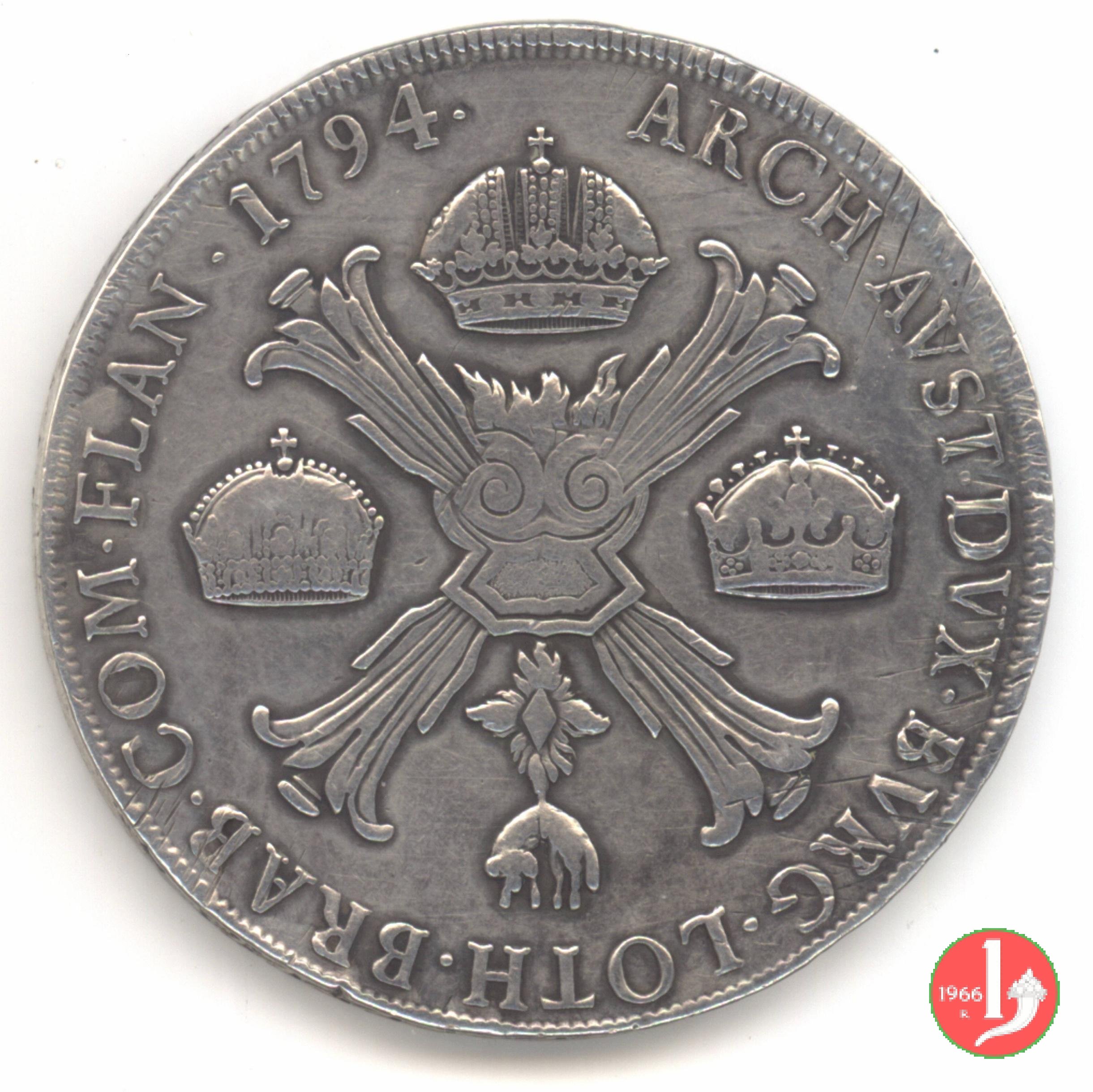 | Tallero o scudo delle corone (kronenthaler) detto anche Crocione per la croce presente al dritto. Corrispondente a 7 lire e 10 soldi. | ||||||||