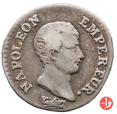 Indicazione del valore (QUART) tra fronde di lauro. Intorno, nella metà superiore, REP • FRA •, nella metà inferiore in senso antiorario,  • cuore • (simbolo del maestro di zecca), indicazione del millesimo, un • e segno di zecca ( • U •). Testa di Napoleone Bonaparte rivolta a destra, intorno NAPOLEON EMPEREUR •. Sotto il taglio del collo indicazione dell'incisore in corsivo (TIOLIER).