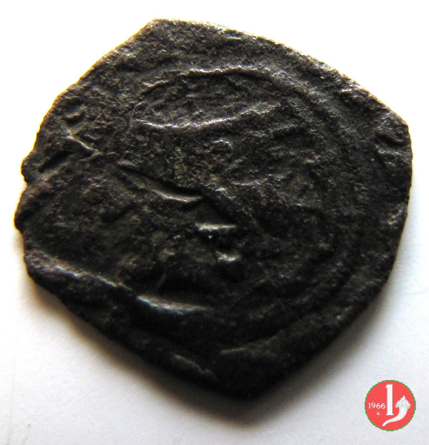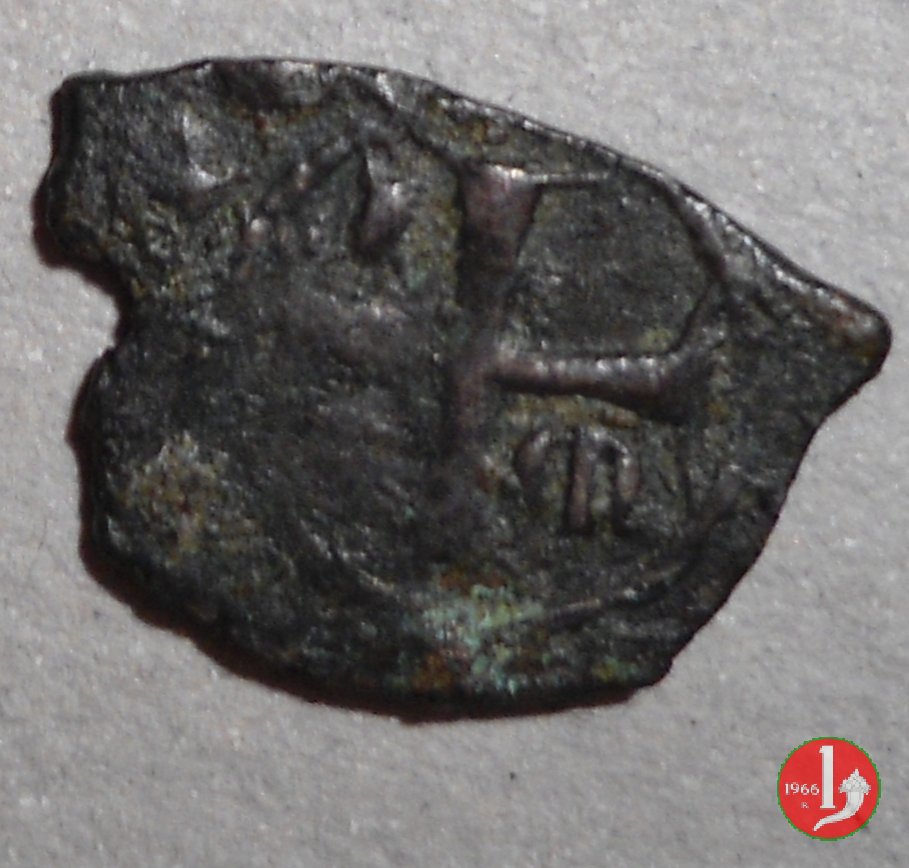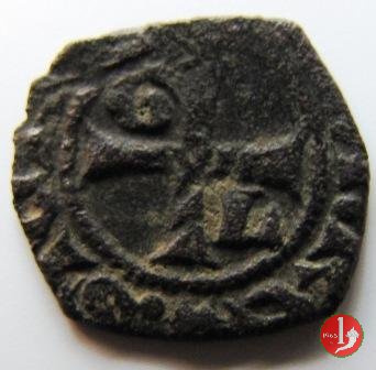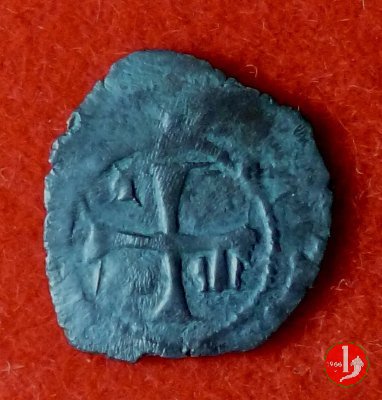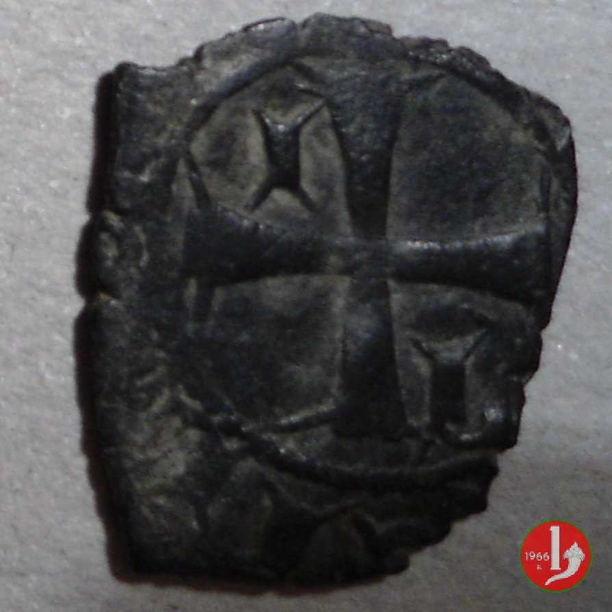 primo angolo = spicchio croce in alto a sinistra, secondo angolo = spicchio croce in alto a destra, terzo angolo = spicchio croce in basso a sinistra, quarto angolo = spicchio croce in basso a destra. ¹ Croce patente: colle braccia che vanno allargandosi. Interp. FRIDERICUS DEI GRA(tia) REX SICIL(iae). Trad. Federico,per grazia di Dio Re di Sicilia. Il denaro riportato nello Spahr n° 222 è stato cancellato, poiché trattasi di un denaro di Carlo I d'Angiò (1266 - 1282). | ||||||||||||||||||||||||||||