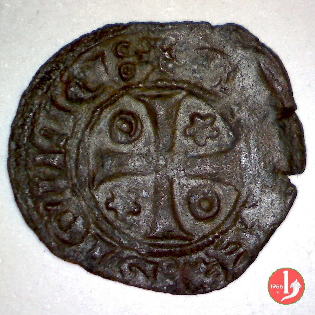 primo angolo = spicchio croce in alto a sinistra, secondo angolo = spicchio croce in alto a destra, terzo angolo = spicchio croce in basso a sinistra, quarto angolo = spicchio croce in basso a destra. ¹ Croce patente: colle braccia che vanno allargandosi. Interp. FRIDERICUS DEI GRA(tia) REX SICILI(a)E Trad. Federico,per grazia di Dio Re di Sicilia. | |||||||||||||||||||||||||||||||||||||||||||||||||||||||||||