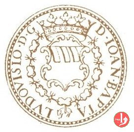 PRINCEPS PLVMBINI Busto a destra corazzato con lunga capigliatura D • IOAN • BAPTA LVDOVISIO • D • G Stemma a forma di cetra in cartella coronata,ornata di ricci e fogliame e circondata dal collare del Toson d'oro