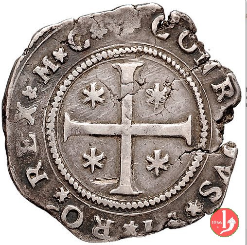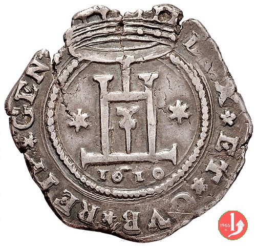 | Questa moneta è stata battuta in due tipi sostanzialmente diversi: dal 1567 al 1572 presenta il castello e la croce racchiusi in archetti. Dal 1594 al 1636 si adegua al tipo mezzo scudo e scudo senza archetti, con 2 stelle ai lati che dal 1611 sono sostituite da 2 croci e al D/ e 4 stelle in tutti i quadranti anzichè solo 2. Il C.N.I. descrive 4 date con gli archetti (17 varianti) e 23 date per il nuovo tipo (con 43 varianti). E' noto un falso d'epoca in rame con data 1635. | ||||||
