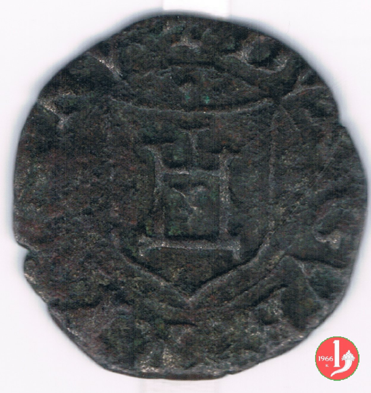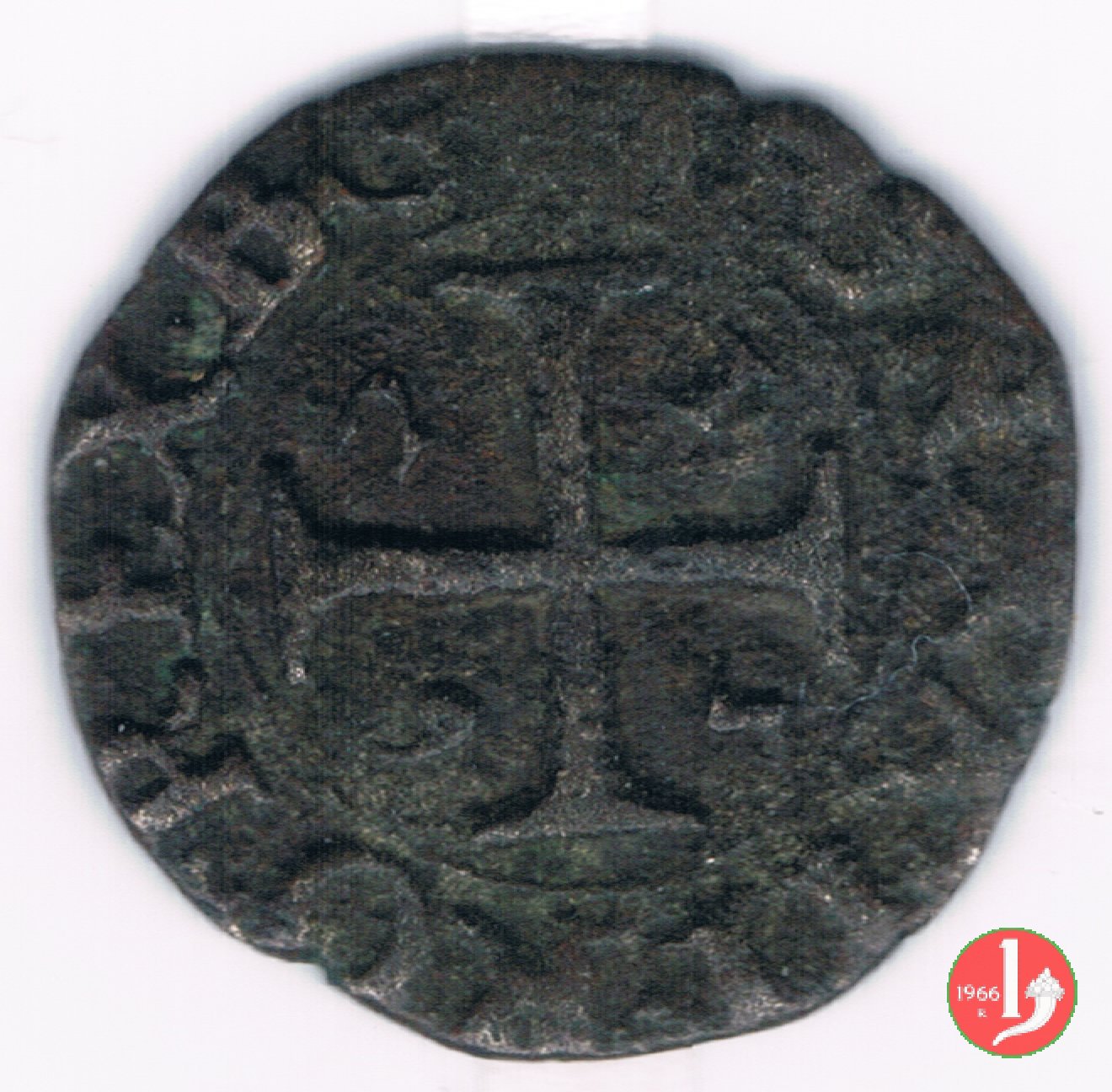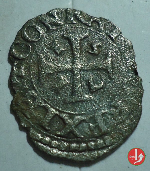 Moneta battuta in grandi quantitativi, di solito reperibile in mediocre stato di conservazione dovuto al corso prolungato e dalla poco accurata battitura.E stata emessa dal 1556, il C.N.I. ne descrive 46 date fino al 1626 con 123 varianti. Varianti del D/ REIP, R •P, globetto anzichè punto. Varianti del R/ CONR, ROM, R' (anzichè REX), CON', CORA, CONRADVS. | ||||||