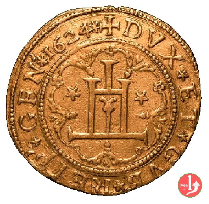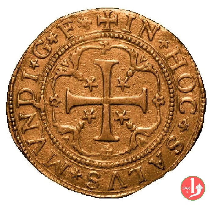 I punzoni di questa moneta sono stati adoperati per lo scudo d'argento. I 7 esemplari descritti sul C.N.I. recano date comprese tra il 1600 e il 1633. Dal 1613 le due stelle a fianco del castello del D/ sono sostituite da 2 croci. Non si conoscono varianti. Nell'Asta Bolaffi 2011 è apparso un esemplare inedito chiamato "10 scudi d'oro", del peso di 32,00 gr, con millesimo 1624, con impronte diverse e con la legenda del R/ modificata: IN * HOC * SALVS * MVNDI * G * F | ||||||