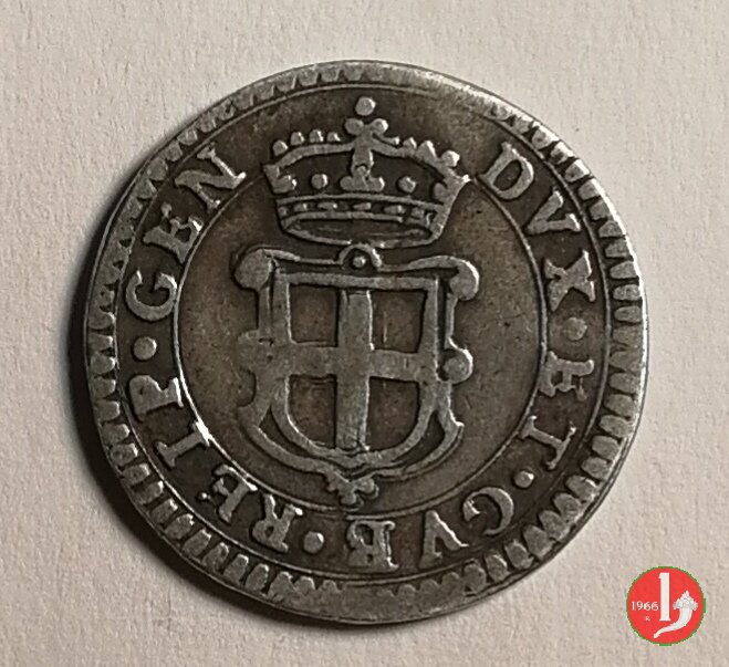Corrisponde a 1/4 di lira ed è stato battuto solo nell'anno 1648 in 3 varianti. Probabilmente vennero subito ritirati dal corso perchè contemporaneamente si stavano battendo le monete da 5 soldi in mistura.