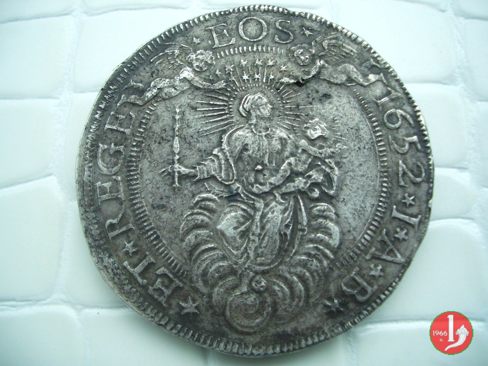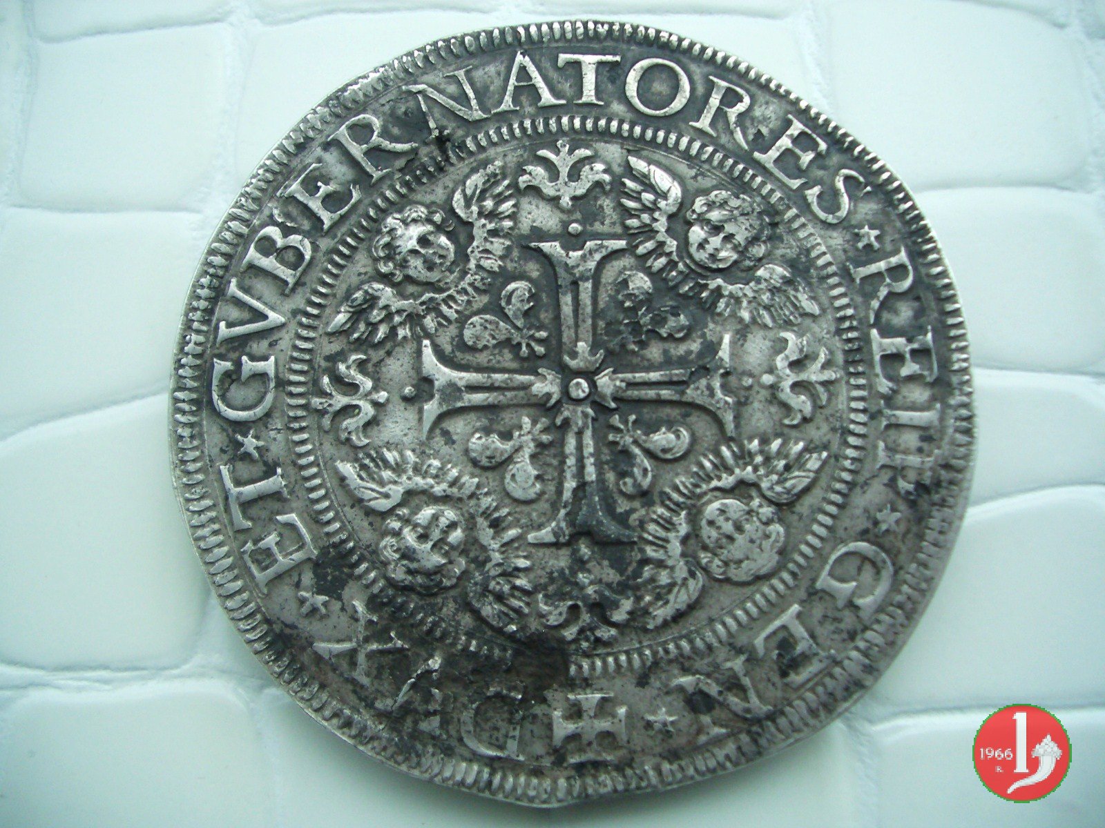 Il C.N.I. riporta per questa moneta 20 date differenti dal 1638 al 1719 con 24 varianti ma se ne conoscono almeno altre due del 1695 e del 1699. Trattasi di moneta abbastanza rara. E' curioso l'errore riscontrato in un esemplare datato 1692 (GUBERNATOES) perchè lo stesso errore si riscontra anche su un esemplare da 2 scudi dello stesso anno (evidentemente fu battuto sullo stesso punzone). Facendo una stima sui pezzi e sulle varianti note dei vari anni nei quali sono stati battuti i multipli e sottomultipli della serie degli scudi stretti e larghi si può concludere che i periodi con minori tirature, e quindi piú rari, sono i pezzi battuti negli anni dal 1638 al 1650 e dal 1700 in poi.