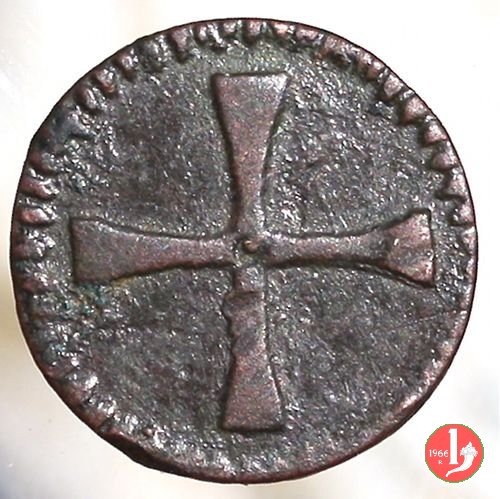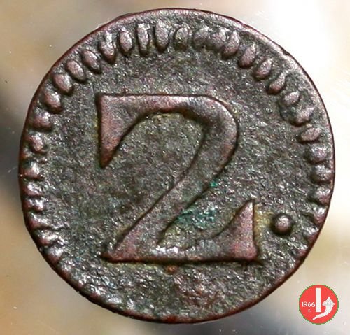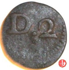 Moneta senza data emessa nel 1751, battuta in rame perchè, secondo il C.N.I., dovevano sostituire quelle in mistura d'argento per scarsità dell'argento. Al D/ la lettera D può essere grande o piccola e ci sono esemplari senza il punto, con D e 2, altri hanno solo il 2.