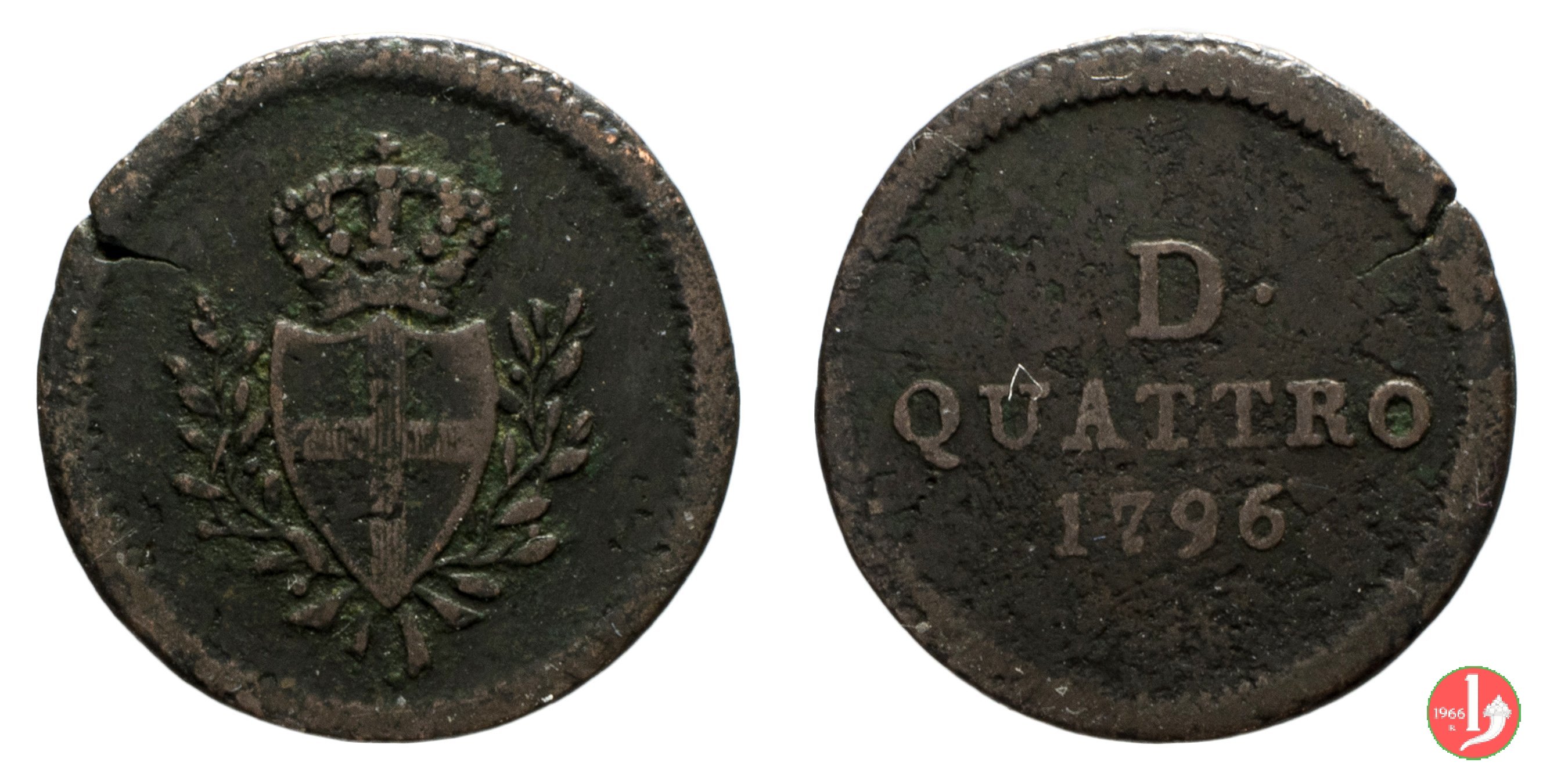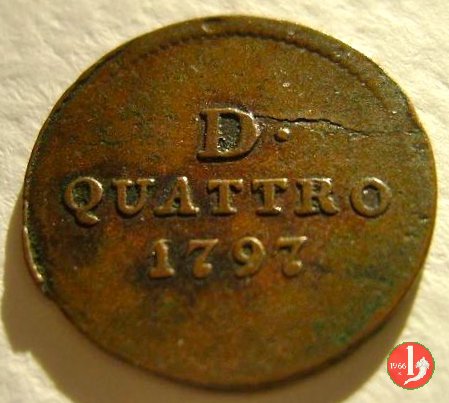 Indicazione del valore (D • QUATTRO), il millesimo e •. Stemma coronato tra due rami.