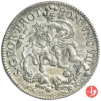 San Giorgio a cavallo rivolto a sinistra in cerchio perlinato.