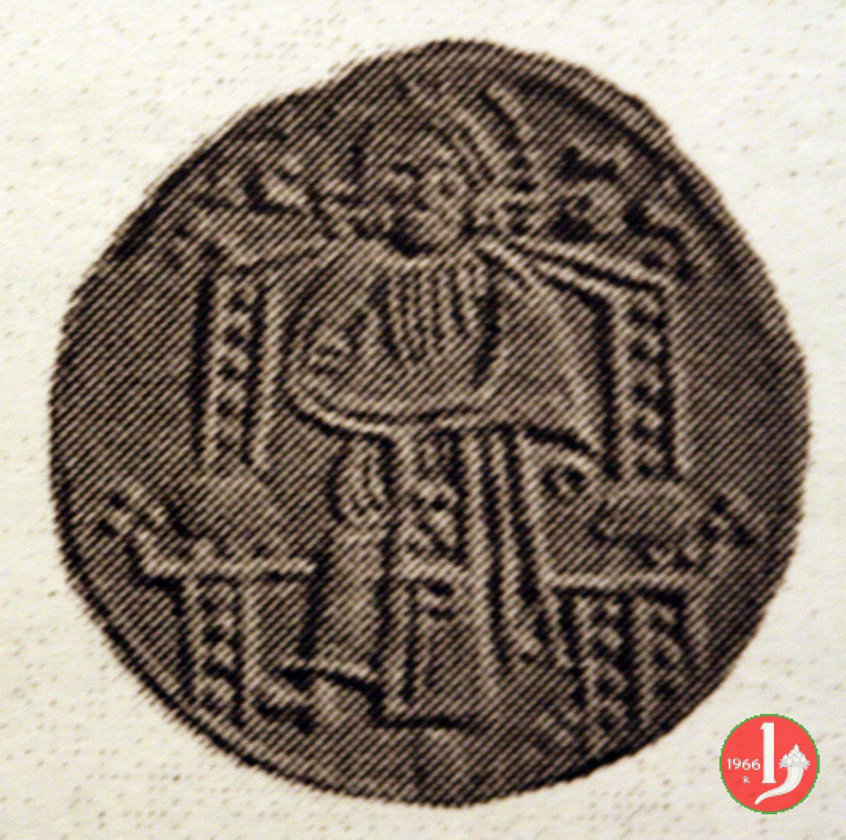 | Paleologo (1282-1313) era fratello di Manuele e figlio dell'ammiraglio Benedetto Zaccaria (1248-1307)e aveva due figli: Benedetto II (nipote, quindi, del piú famoso ammiraglio) e Martino. Curiosa la definizione di "Servorvm Imperatoris", omaggio a Costantinopoli di cui gli Zaccaria si consideravano vassalli. Questa moneta è di imitazione del grosso matapan di tipo veneziano ma piuttosto grezzo. Moneta estrememente rara, l'esemplare descritto faceva parte di un "tesoretto" scoperto nel marzo 1887 in un campo presso Siderunda, piccolo villaggio a 7 ore da Chios. La datazione della moneta si crede essere tra il 1309 (presunta data di morte di Paleologo) e il 1313 (data certa della morte del figlio Benedetto II). Di questa moneta se ne conoscono 3 esemplari. | ||||