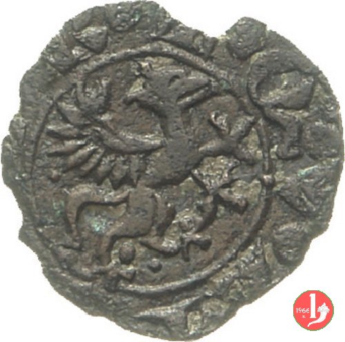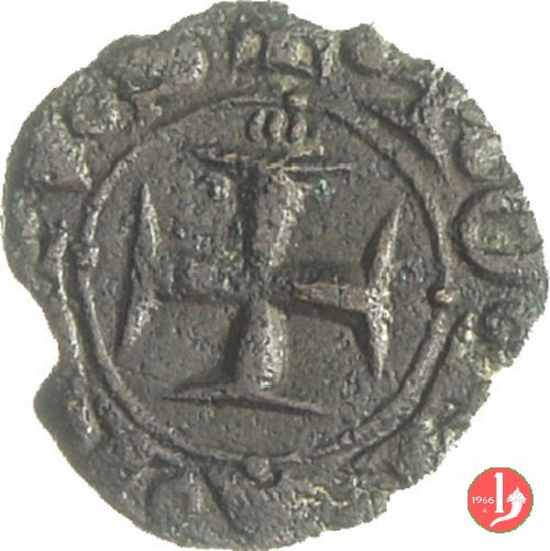 | Quest'ultimo tipo, ispirato al precedente, rappresena sul D/ del grifo attorniato dalla leggenda QVARTARO con numerose varianti di interpunzione (punti, trifogli anellini); sul R/ appare la croce in cerchio lineare circondata dall'enigmatica legenda TOMAINVS, di cui fino ad oggi non si conosce il significato, se non si vuol riferire allo zecchiere il cui nome sia stato eccezionalmente scritto per intero. Ipotesi poco probabile quando si pensi che nessun'altra moneta, anche appartenente ad altre zecche, riporta tale particolare. | ||||