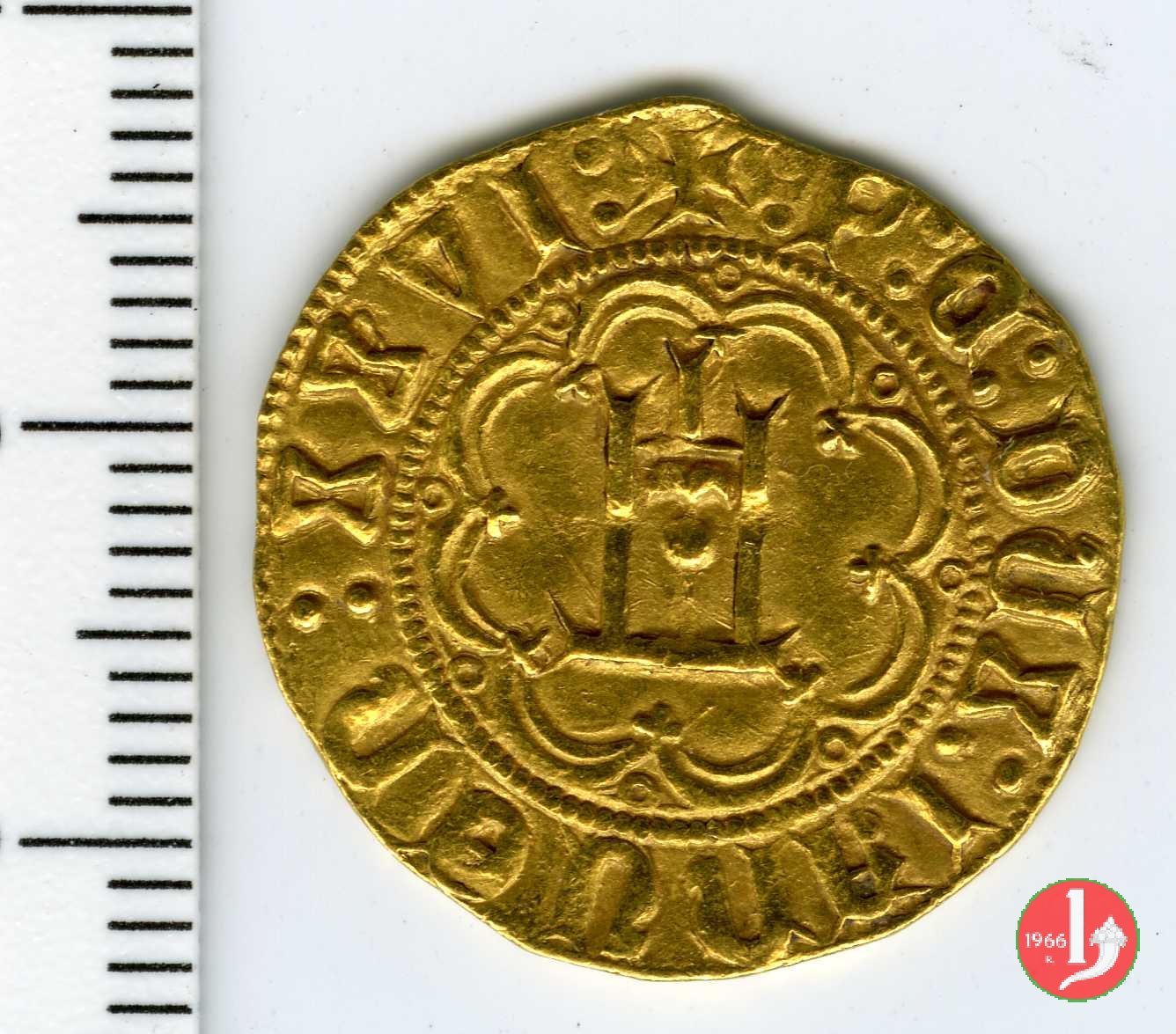 Castello in 8 archetti con crocette e anellini agli angoli, in cerchio perlinato.
