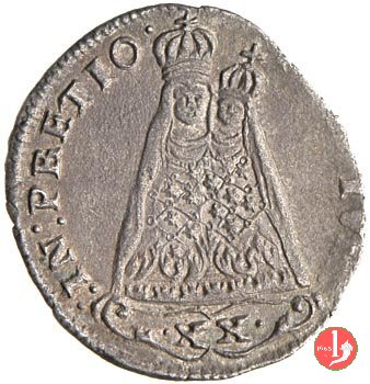 Immagine della Beata Vergine del Castello con bambino. Sotto la Vergine, in esergo, entro un ornato, indicazione del valore ( • XX • ).