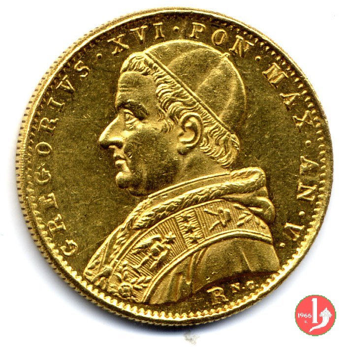 4 Al D/ GREGORIVS •XVI •PON •MAX •AN •V •, in legenda continua; senza punto dopo il segno di zecca.