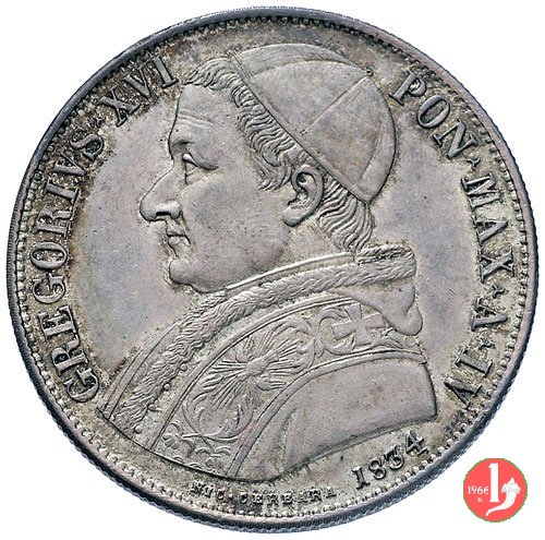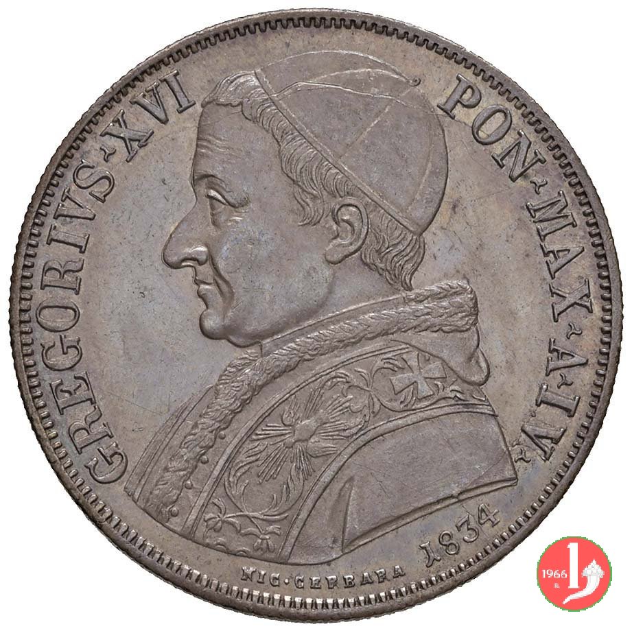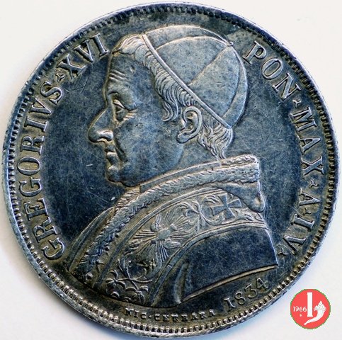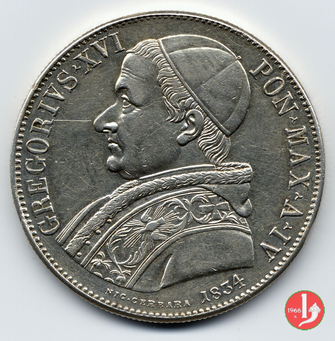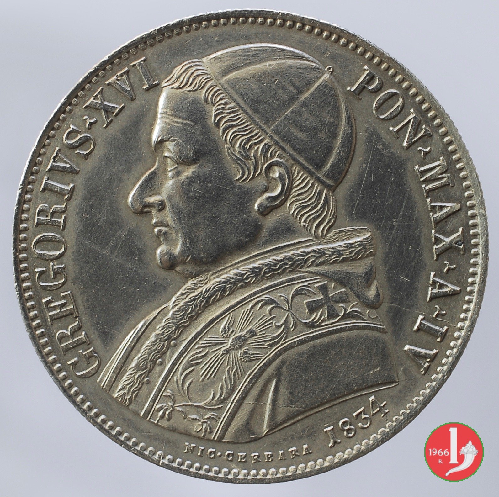 There are discussions about this coin on the forum: Gregorio XVI ancora "sugli scudi"., Monete di Gregorio XVI anno 1834 per Roma Orientamento degli assi ??.