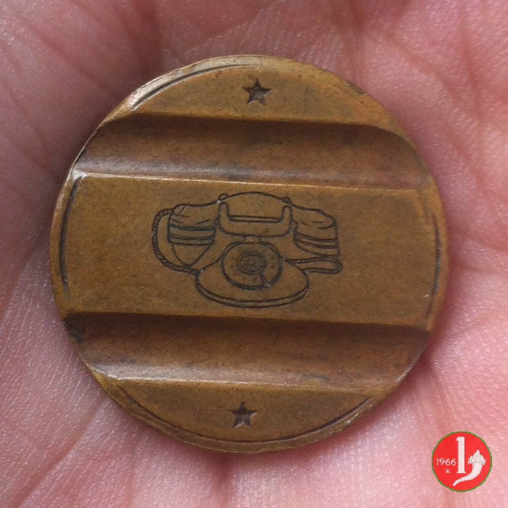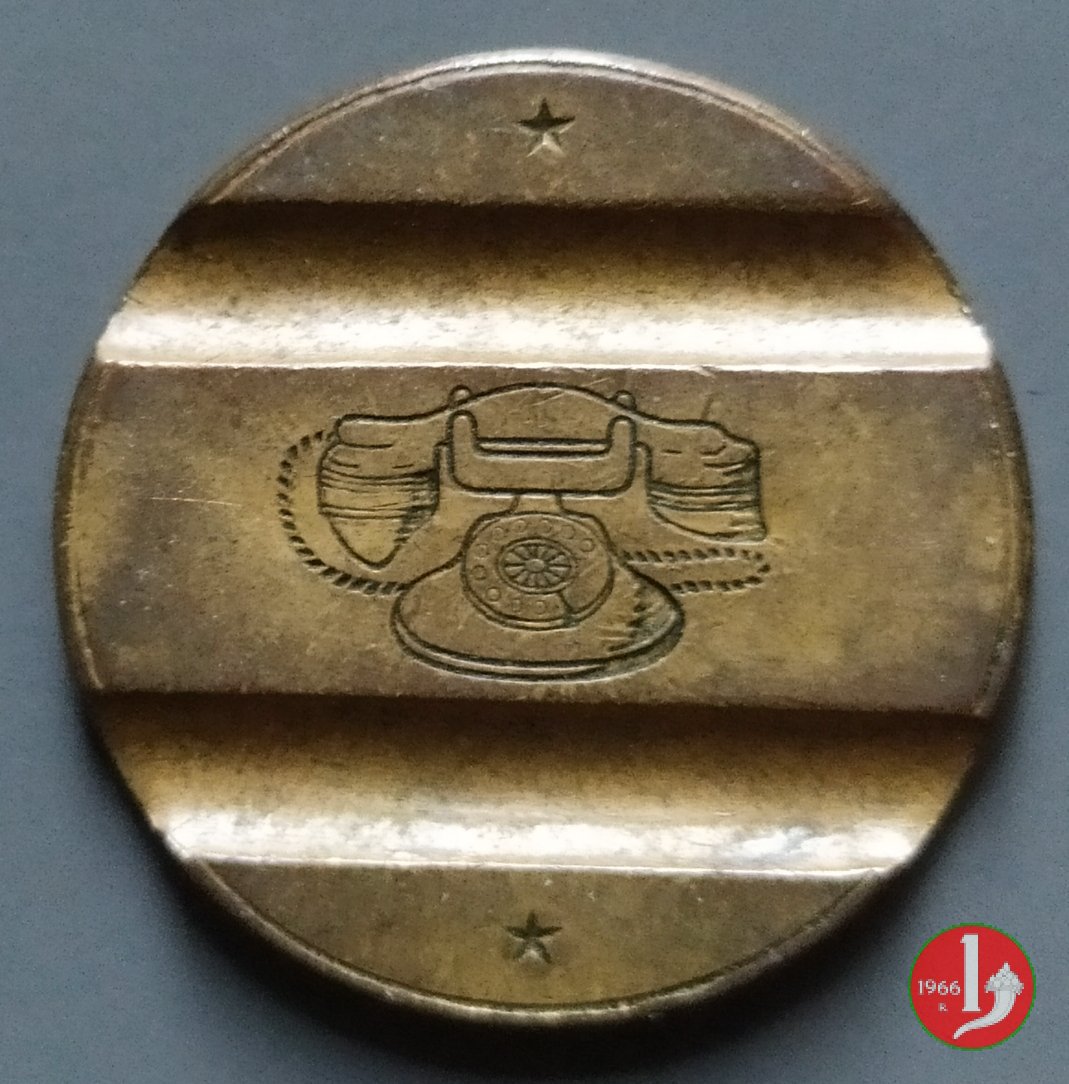 | Questo gettone è stato coniato in due varianti: una con stelline grandi e telefono normale, l'altra con stelline piccole e telefono ombreggiato alla base destra probabilmente in anni differenti. La data di produzione non è certa ma si aggira attorno al 1933 sicuramente prima dei gettoni in zama con il medesimo dritto del 1935. Sia i gettoni con telefono normale sia quelli con telefono ombreggiato sono stati coniati con assi alla francese e alla tedesca. | |||||||||||||