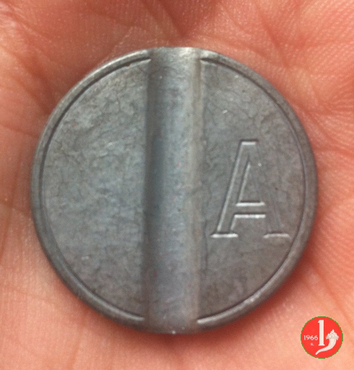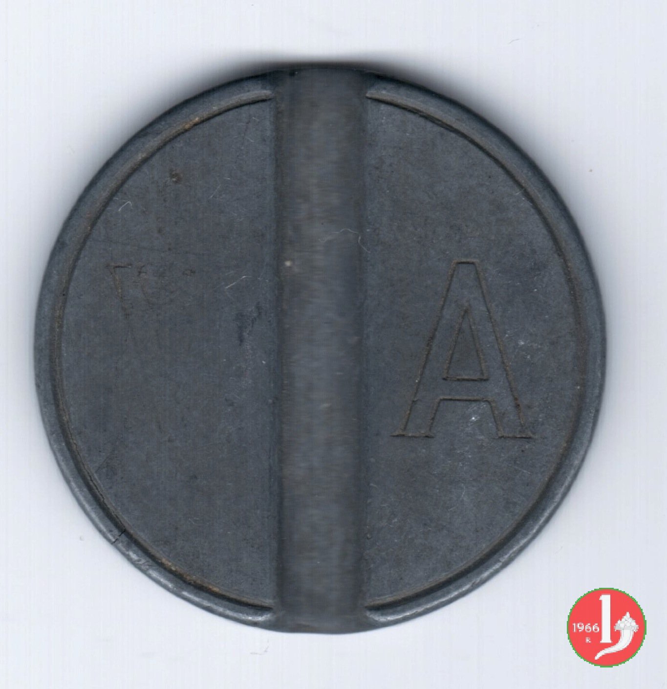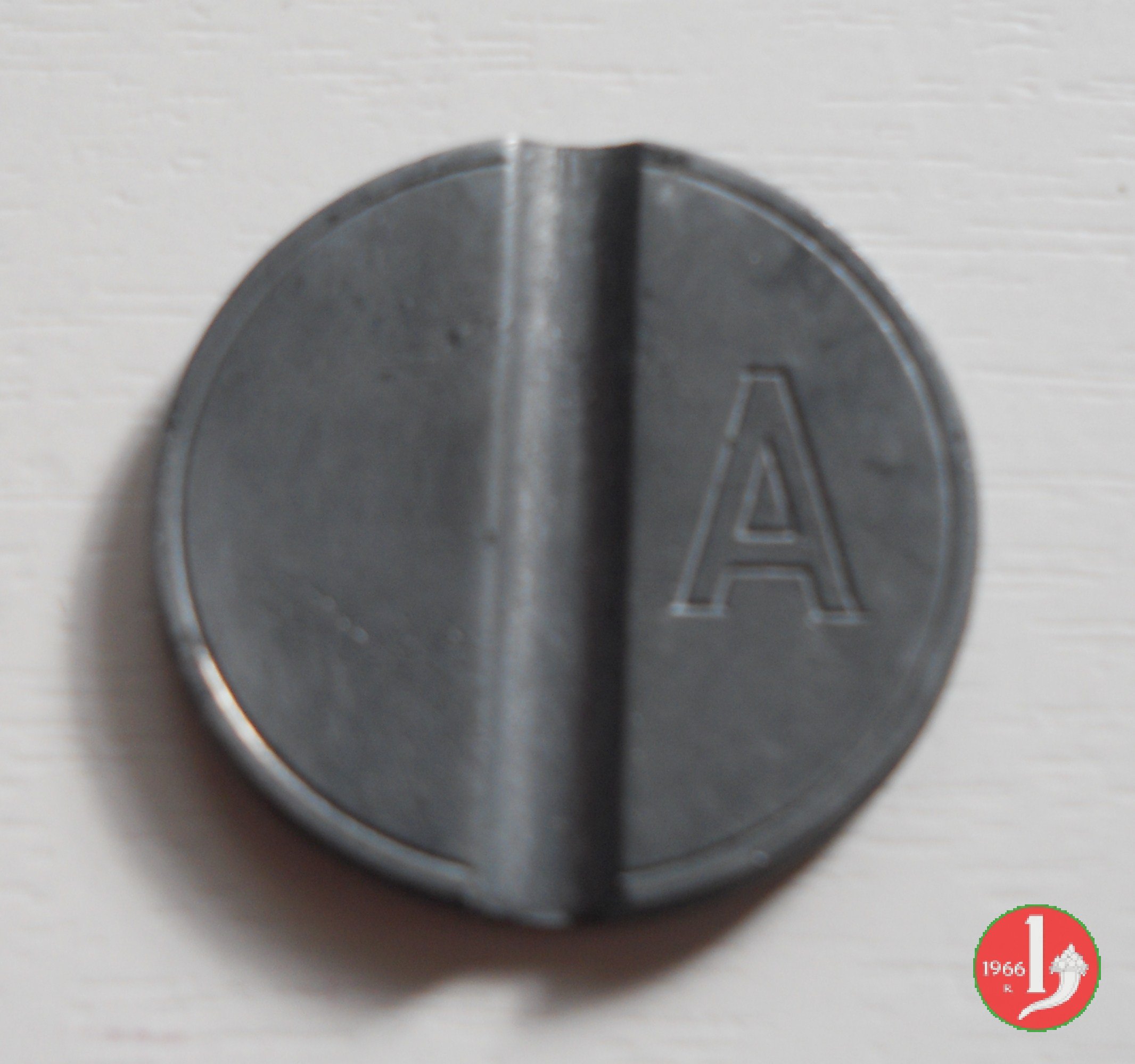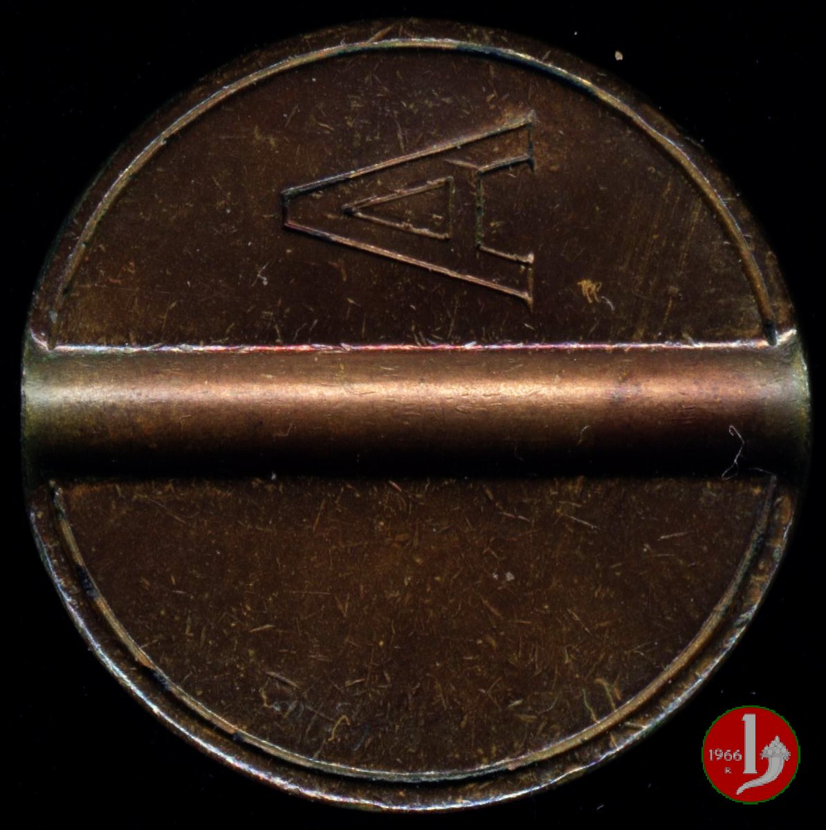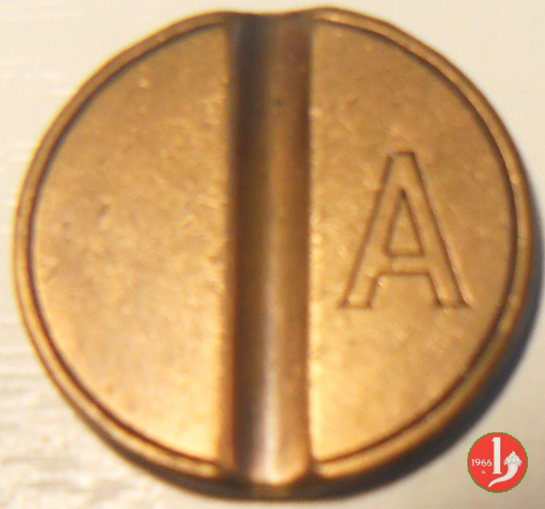 sotto in orizzontale una grande "A" in incuso al centro immagine in incuso di un telefono.