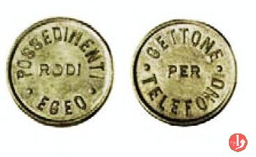 sul giro sopra e sotto in rilievo POSSEDIMENTI • EGEO • al centro RODI sul giro sopra e sotto in rilievo • GETTONE • TELEFONO al centro PER