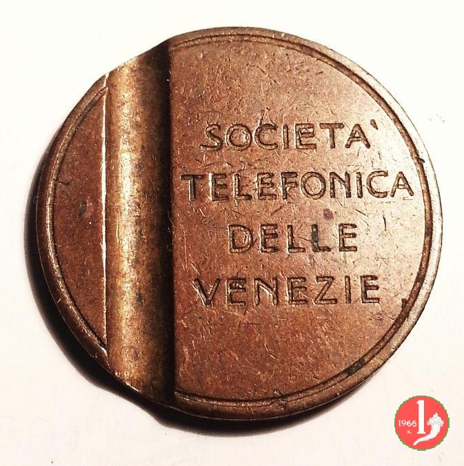 sulla destra in 4 righe in incuso scritta SOCIETA' TELEFONICA DELLE VENEZIE sulla sinistra immagine in incuso di un disco combinatore.