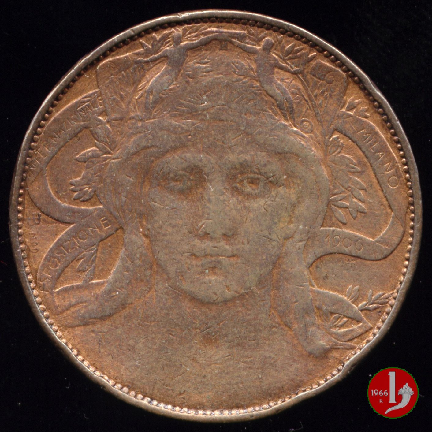 Gettone da 20 centesimi coniato per l'esposizione internazionale di Milano realizzata nel 1906 in occasione dell'inaugurazione della ferrovia del Sempione.