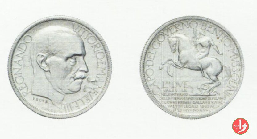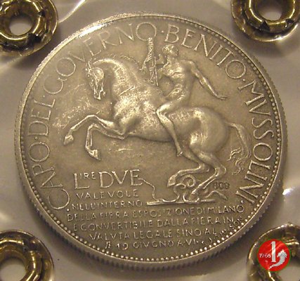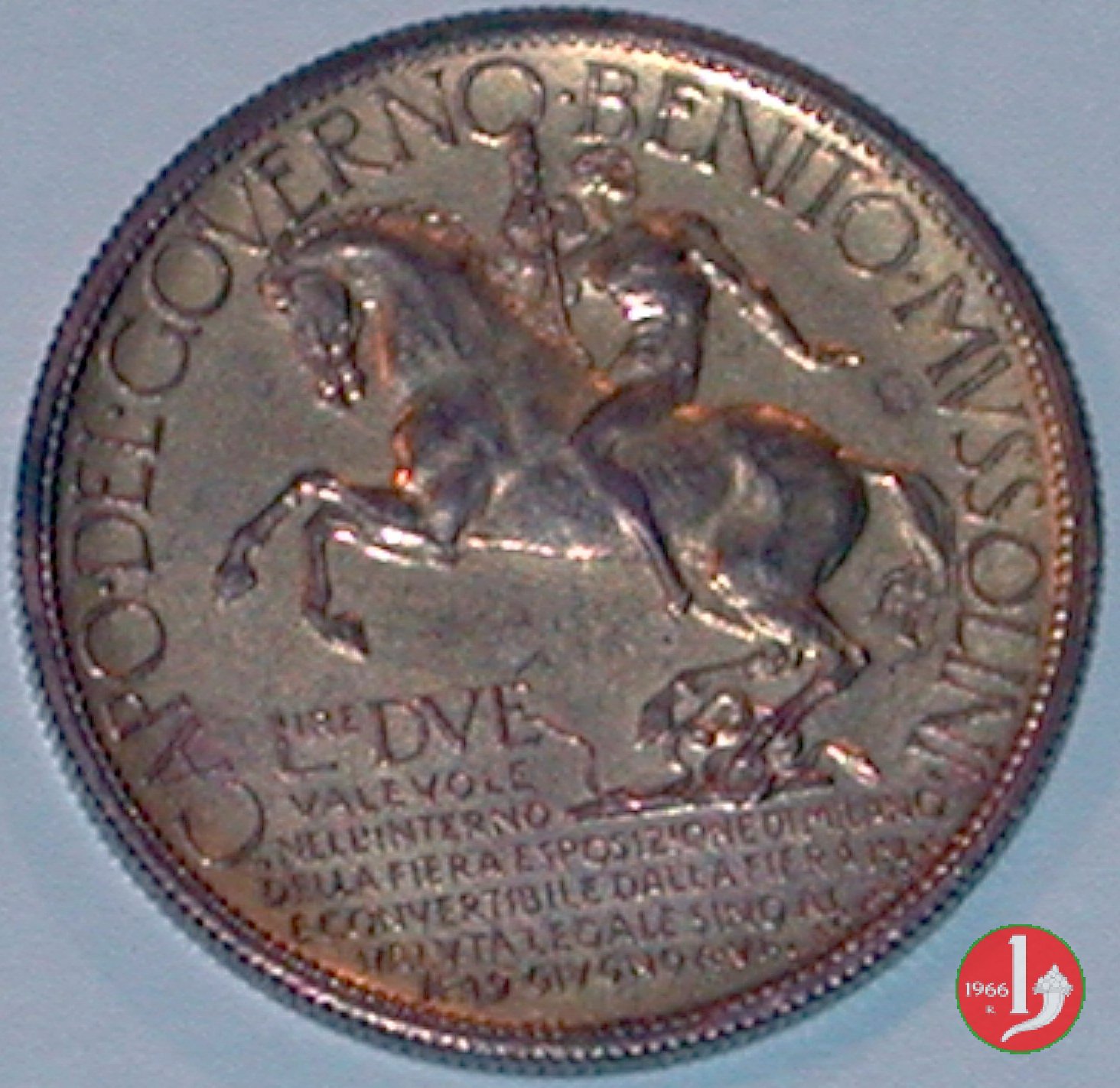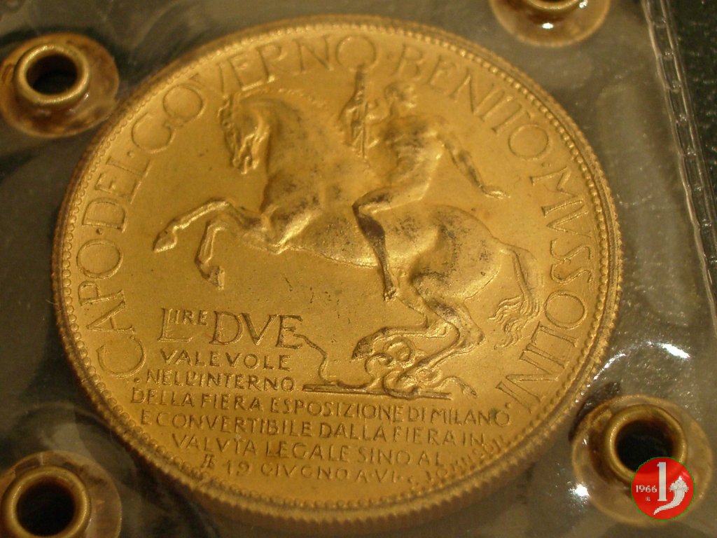 Gettone da 2 lire coniato per la Fiera Esposizione di Milano dedicata al decennale della vittoria