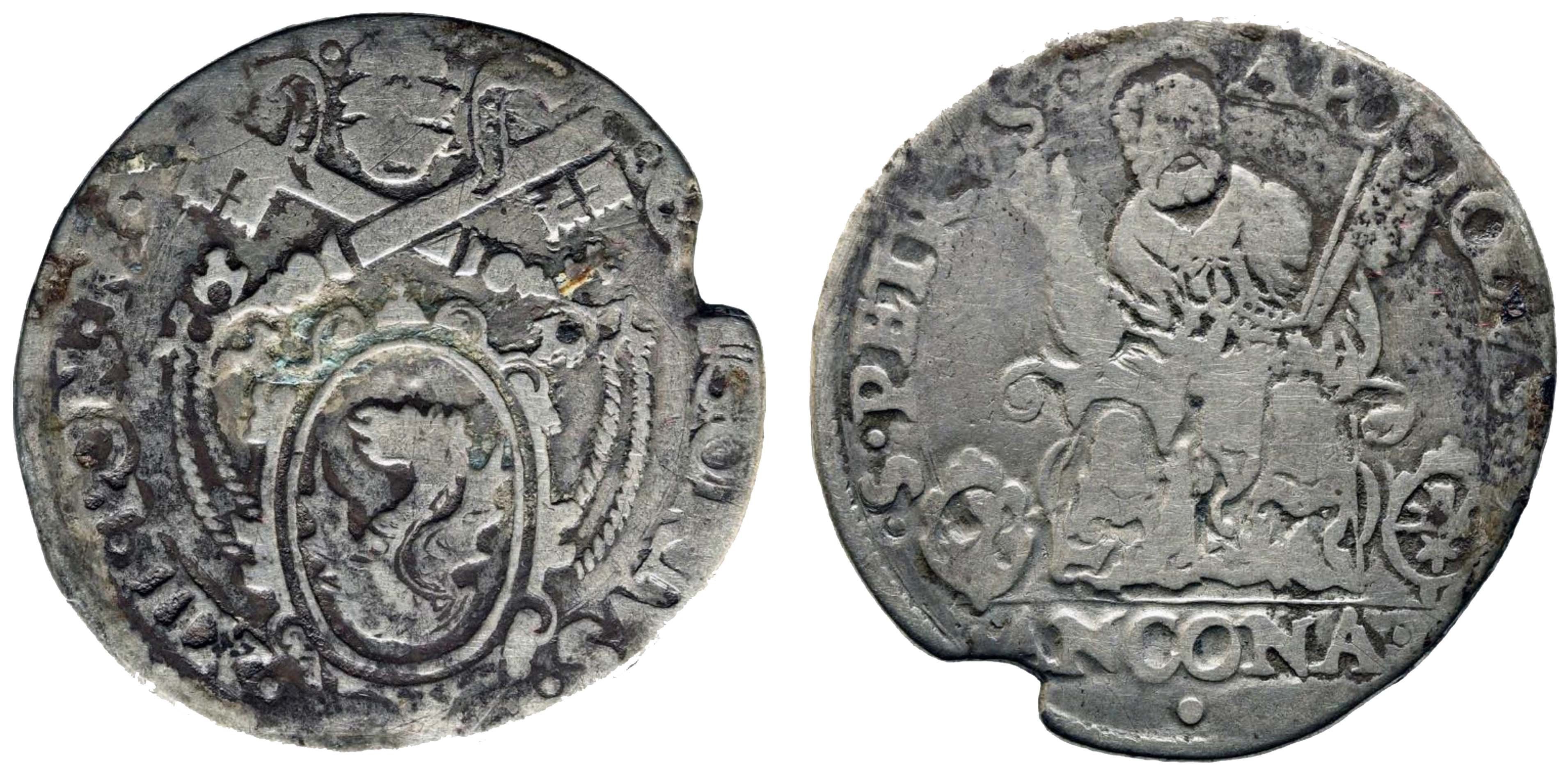 R/ (da sinistra) •S •PETRVS •__ •APOSTOLVS • / in esergo •ANCONA •|| • |