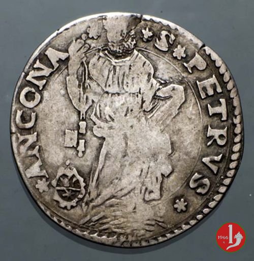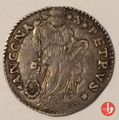 7 D/GREGO •__XIII •P •M /Cornice semplice con 2 volute e stella a 6 raggi sopra R/ •S •PETRVS • trifoglio__ANCONA /S.Pietro nimbato, il piede su gradino, tiene con la destra le chiavi erette con cordone e fiocco