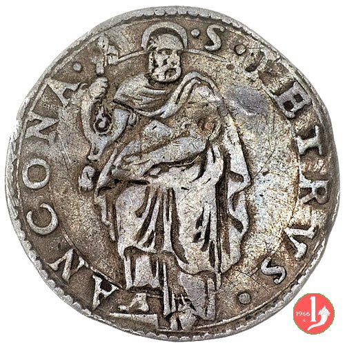 8 D/GREGORI •__XIII •PONT •M /Cornice semplice con 2 volute e nulla sopra R/ •S •PETRVS •__ANCONA • /S.Pietro nimbato, il piede su gradino, tiene con la destra le chiavi erette con cordone e fiocco