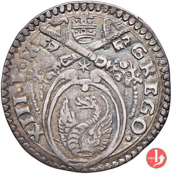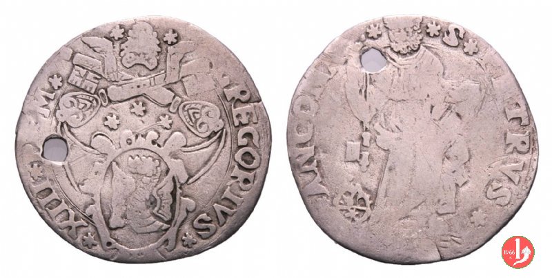 9 D/GREGOGI •__XIII •PONT •MAX /Cornice semplice con 2 volute e nulla sopra R/ •S •PETRVS__ANCONA /S.Pietro nimbato, il piede su gradino, tiene con la destra le chiavi erette con cordone e fiocco
