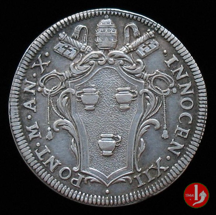 Legenda da DX: INNOCEN • XII • - • PONT • M • A • anno di pontificato