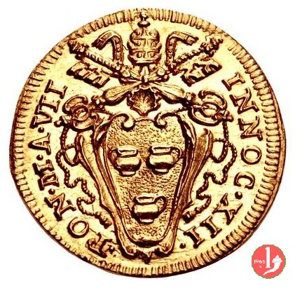 1 D/: Stemma trilobato, chiavi con impugnatura oblunga con cordoni e fiocchi. Legenda da DX: • INNOC • XII • - • PON • M • A • anno di pontificato •
