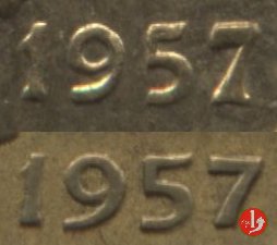 2 Esiste una variante con il gambo del 7 nel millesimo piú largo alla base. La mia stima è che la tiratura di questa variante possa essere indicativamente tra i 9 e i 13 milioni di pezzi. Quindi è da considerarsi di rarità C.