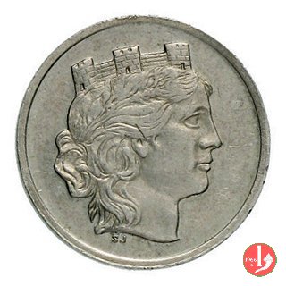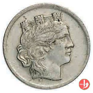 Testa dell'Italia a destra, con corona turrita.