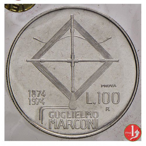 prova 100 lire 1974 (Marconi) in acmonital (Moneta)