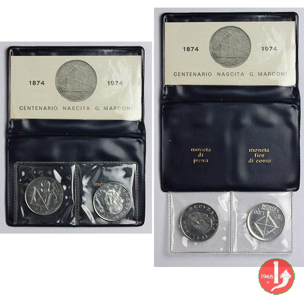 1 Moneta coniata per commemorare il centenario della nascita dello scienziato, premio Nobel per la fisica nel 1909, Guglielmo Marconi, 1874 - 1937.