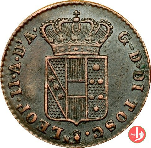MIR tav. 465 (il Quattrino è la moneta coniata per piú anni di tutti gli altri tagli di Leopoldo II) | |||||||||