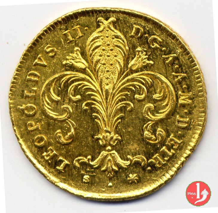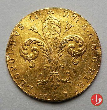(da sinistra) LEOPOLDVS II • D • G • A • A • M • D • ETR • il giglio di Firenze con due fiori;