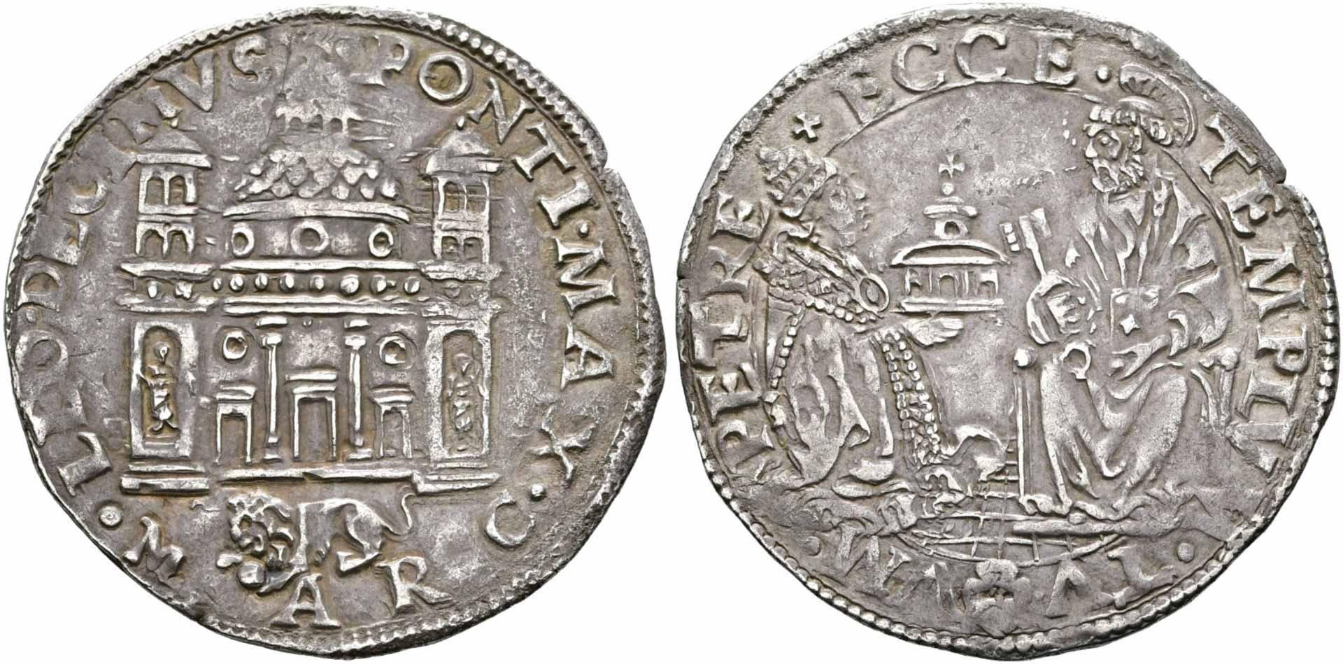 1 D/LEO:DECIMVS__ •PONTI •MAX / •MARC • e leoncino R/PETRE •__ •ECCE •__TEMPLVM° •TV__VM